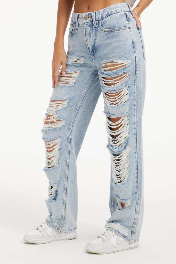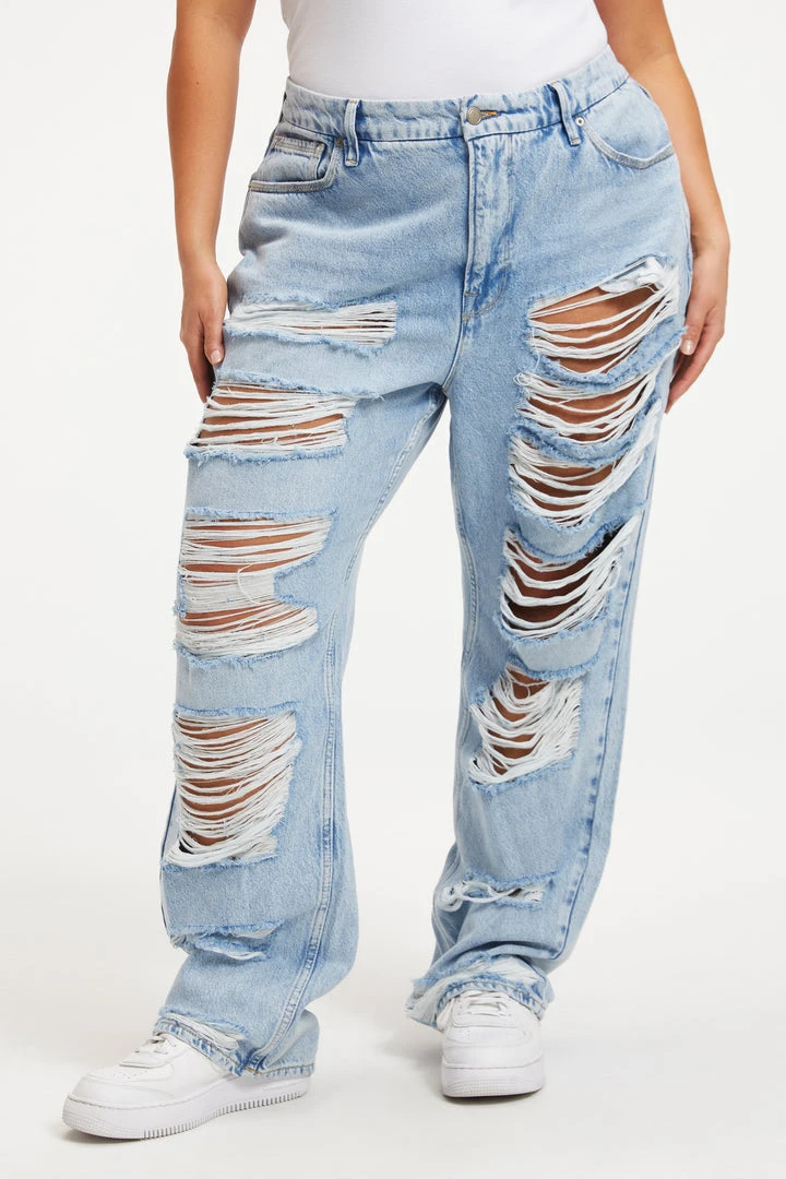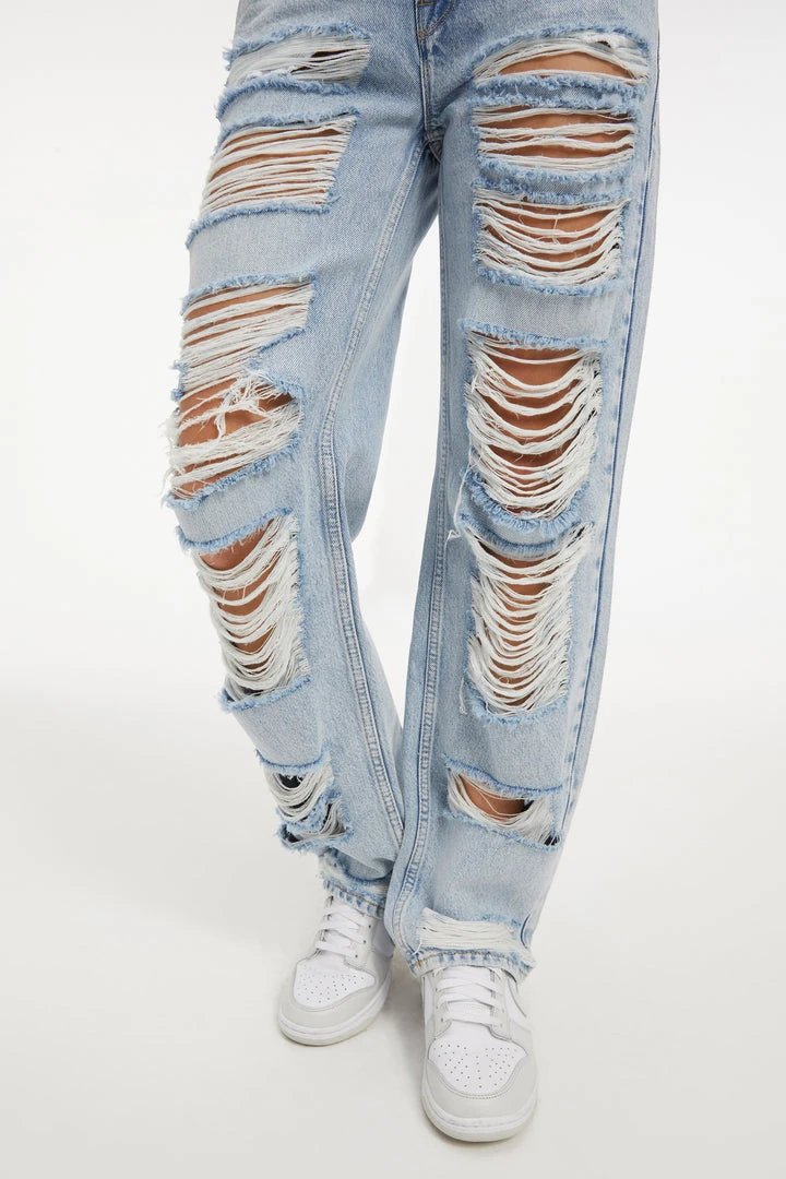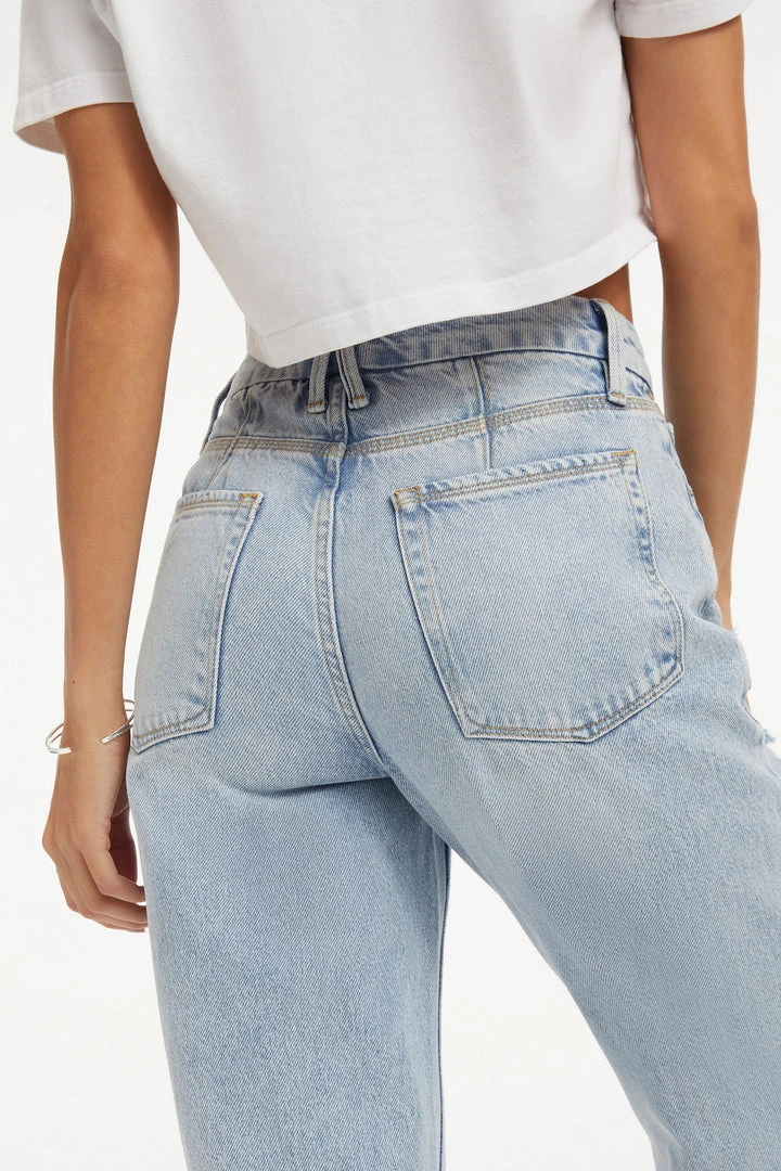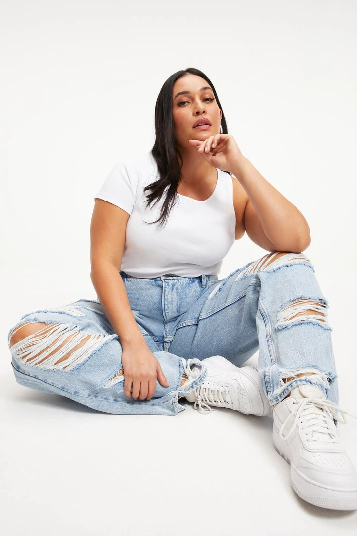 Be festival ready in our updated Good 90s. The perfect sculpted fit, blown out knees, strategic hem destruction – all the festival ready details you need. Our new ’90s-inspired denim is roomy, comfy, and still sexy. With a high waist and straight leg, this bermuda short is oversized yet more form-fitting.