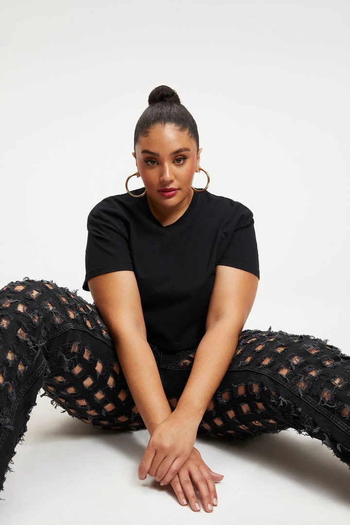 Get ready for your new summer style and revamp your denim collection with these highly distressed denim jeans. The Good ’90s Laser was given a modern twist by being fully perforated. These high waisted jeans comfortably hug your waist and feels roomier at the hem. It features a five-pocket design that contrasts with the eccentric look.