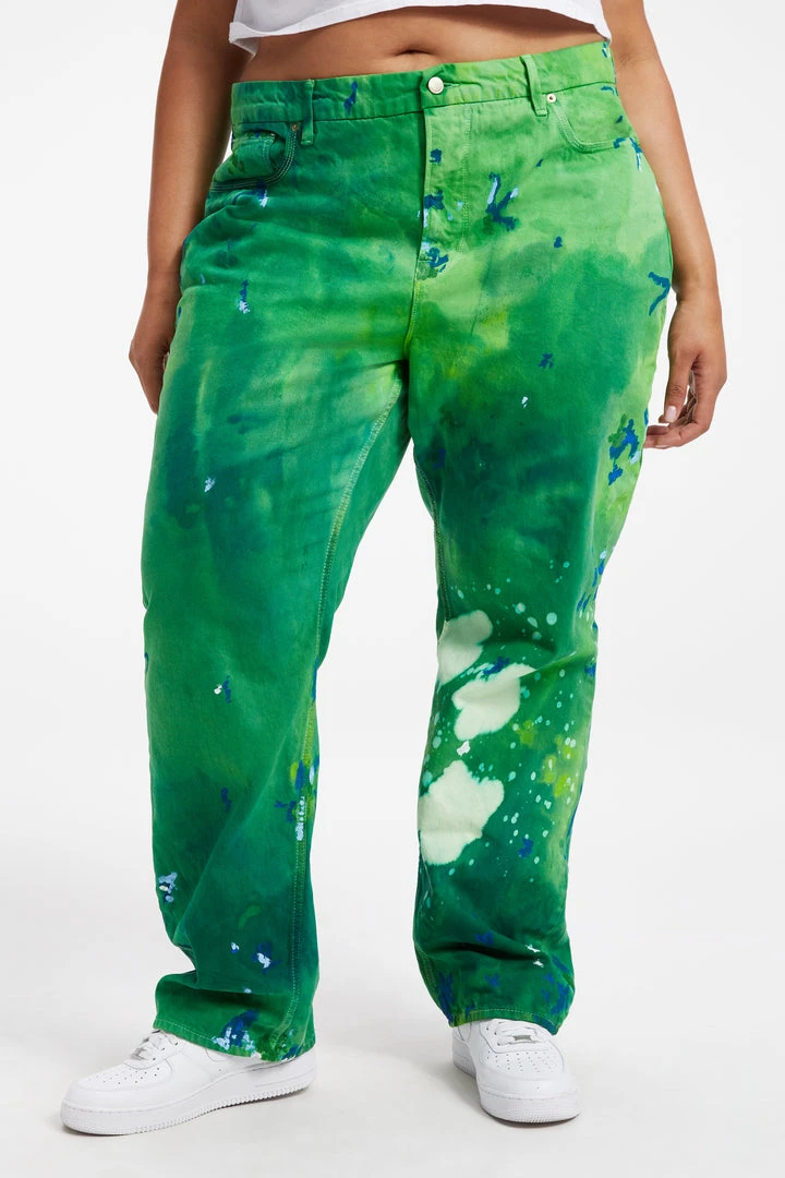 Good American X Behavingliketeenagers jeans are hand painted one-of-a kind Good โ90s jeans. Founded by Prentis, Behavingliketeenagers is launched in collaboration with Good Inc, our new initiative supporting emerging talent.ย I am very excited to be collaborating with Good American – this collection is a celebration of what being an artist is all about, itโs also about dressing real women in custom designs that add something special to their everyday lives which feels amazing โ – PRENTIS