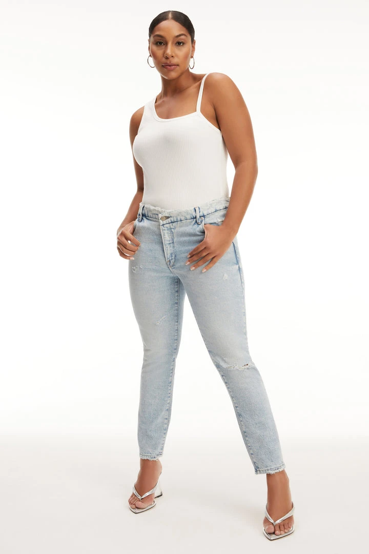 Word on the street is… this is the new “IT” fit. Skinny-ish fit. Mid rise. Designed to make your legs look extra long, so you’ll instantly look taller than you are!
