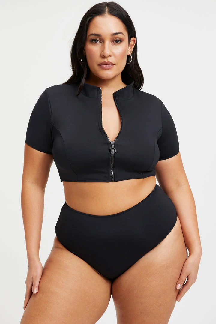 Your new essential one piece that just as chic lounging by the pool as it is styled under your favorite pair of jeans. The Good Compression Swim Shirt is cut from a soft compression fabric that keeps molds to your body while comfortably holding you in. This is the curve-hugging, shape-enhancing, confidence boosting essential for your summer.