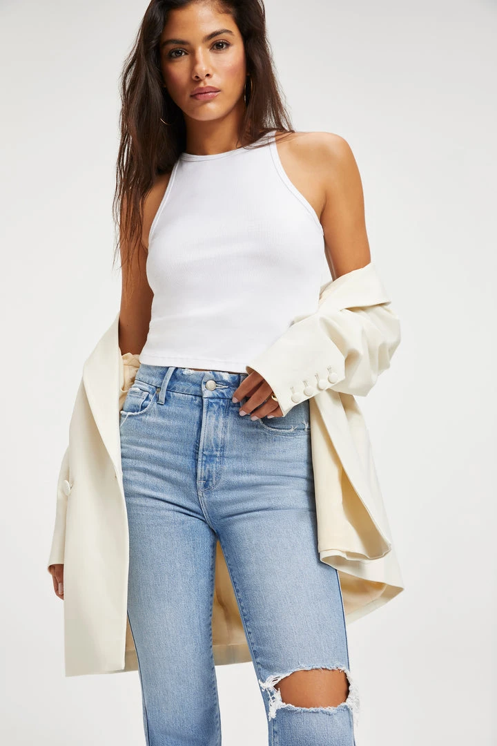 Our ultimate curve-enhancing fit in our highest rise yet, now in a straight leg opening. Yes, these jeans are responsible. Yes, your ass still looks amazing.