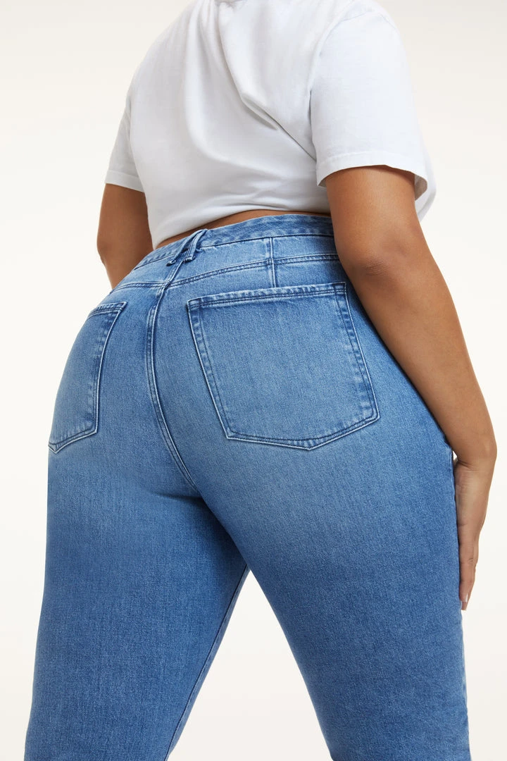 Made with a 90’s vintage inspiration, our Good Icon Cropped will be your new everyday jean. This classic style has a flattering high-rise that nips you right in the waist and straight legs that are cropped right at the ankle. Wear with your favorite pair of or heels or boots.