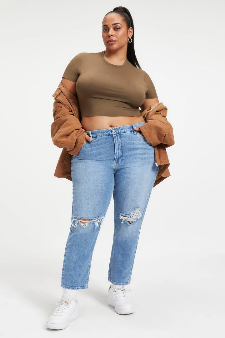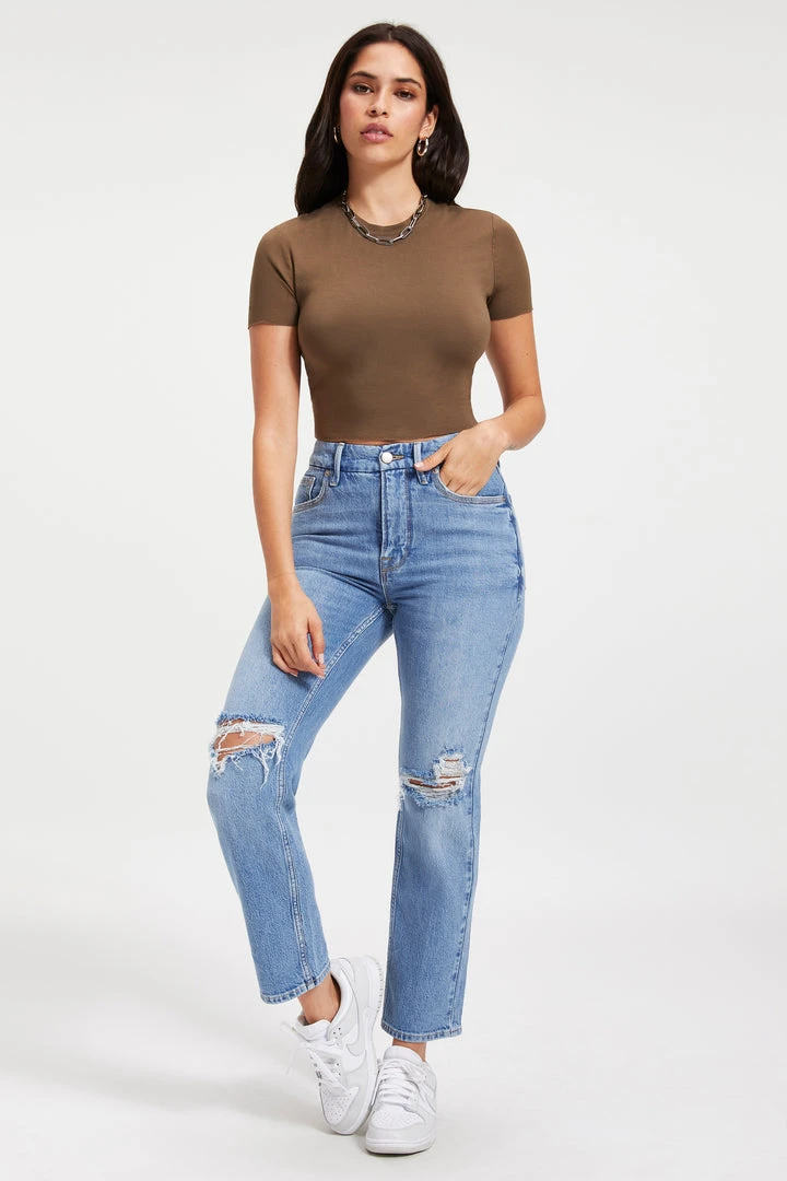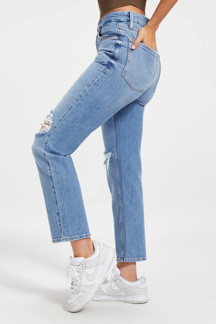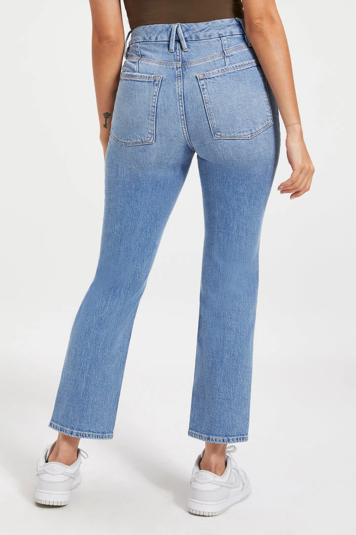 Made with a 90’s vintage inspiration, our Good Icon Cropped will be your new everyday jean. The straight jeans of your dreams: high-rise jeans, fitted through the hips with an iconic straight legs. Wear with your favorite pair of or heels or boots.