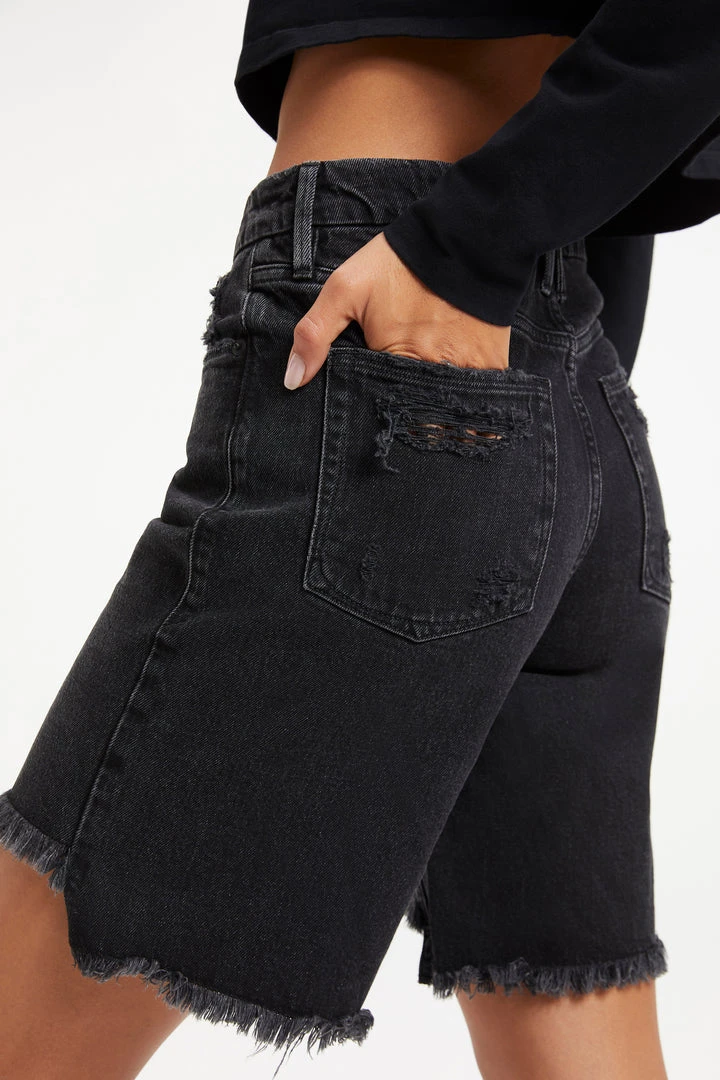 Made with a 90’s vintage inspiration, our Good Icon Short will make your summer dressing easy. The straight jean short of your dreams: high-rise jeans, fitted through the hips with an iconic straight legs. Wear with your favorite pair of or heels or sneakers.