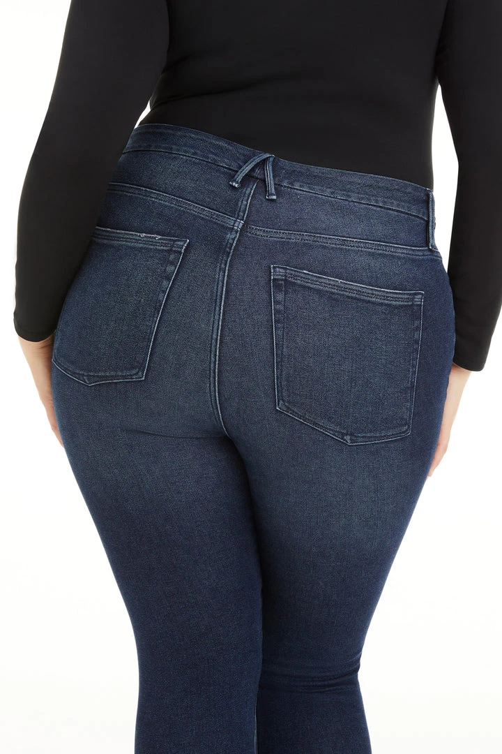 Our #1 best-selling high rise, skinny fit stretch jean in a classic dark blue wash. Made with a gap-proof contoured waistband and a high waist that’s sure to flatter every curve.