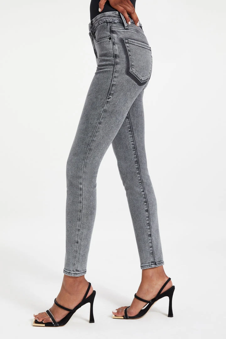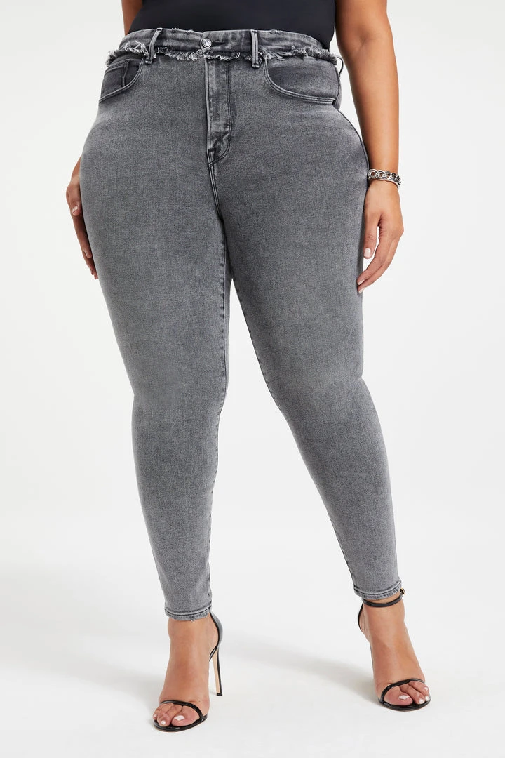 Our #1 best-selling high rise, skinny fit stretch jean in a classic dark blue wash. The Good Legs Shadow Pockets are made with a gap-proof contoured waistband and a high waist that’s sure to flatter every curve.