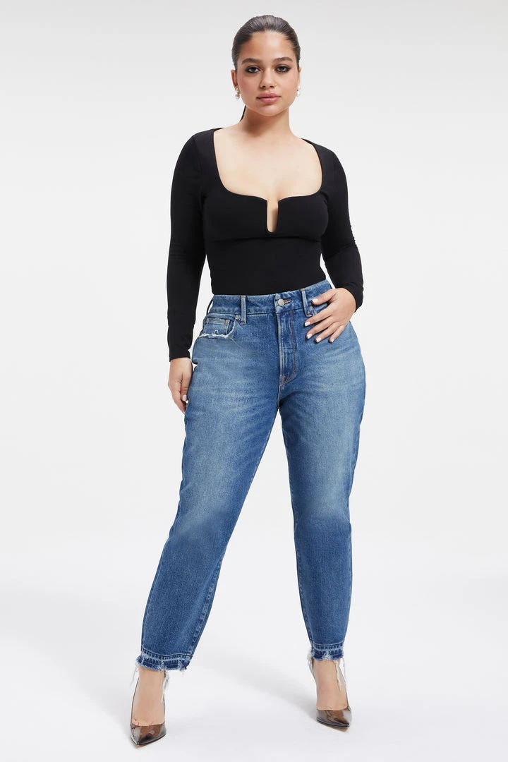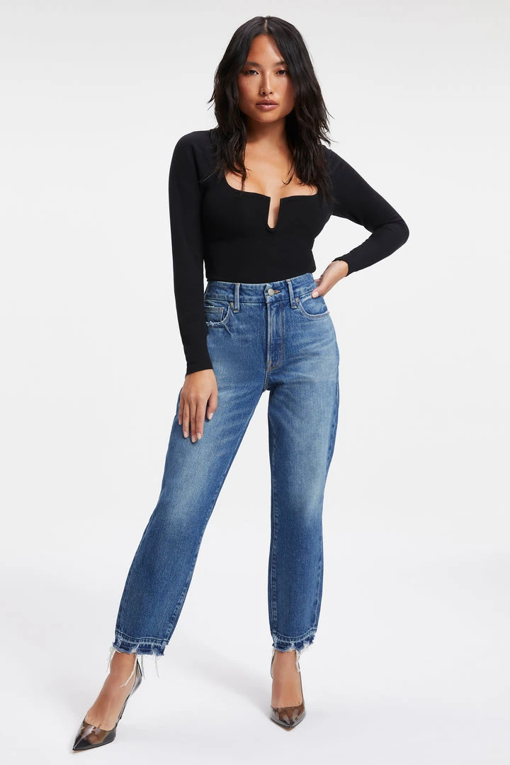 Lower in the rise. Laid-back on the hips. Loose in the leg. A new petite fit made to flatter every curve, in a comfort stretch fabric.