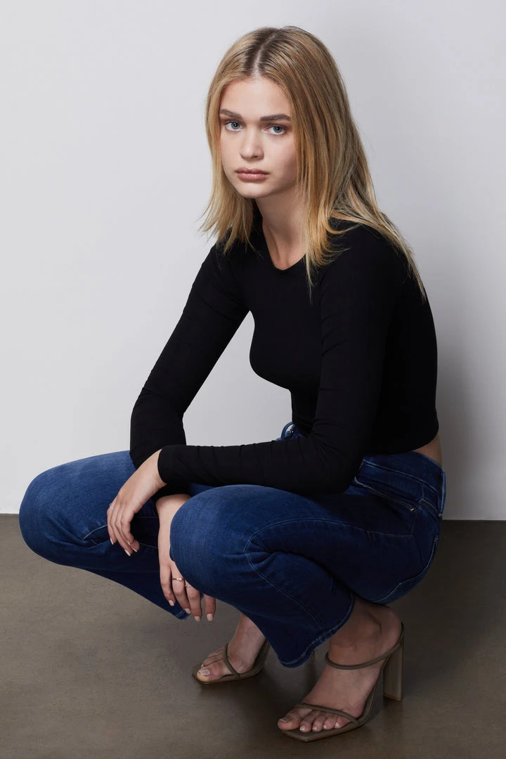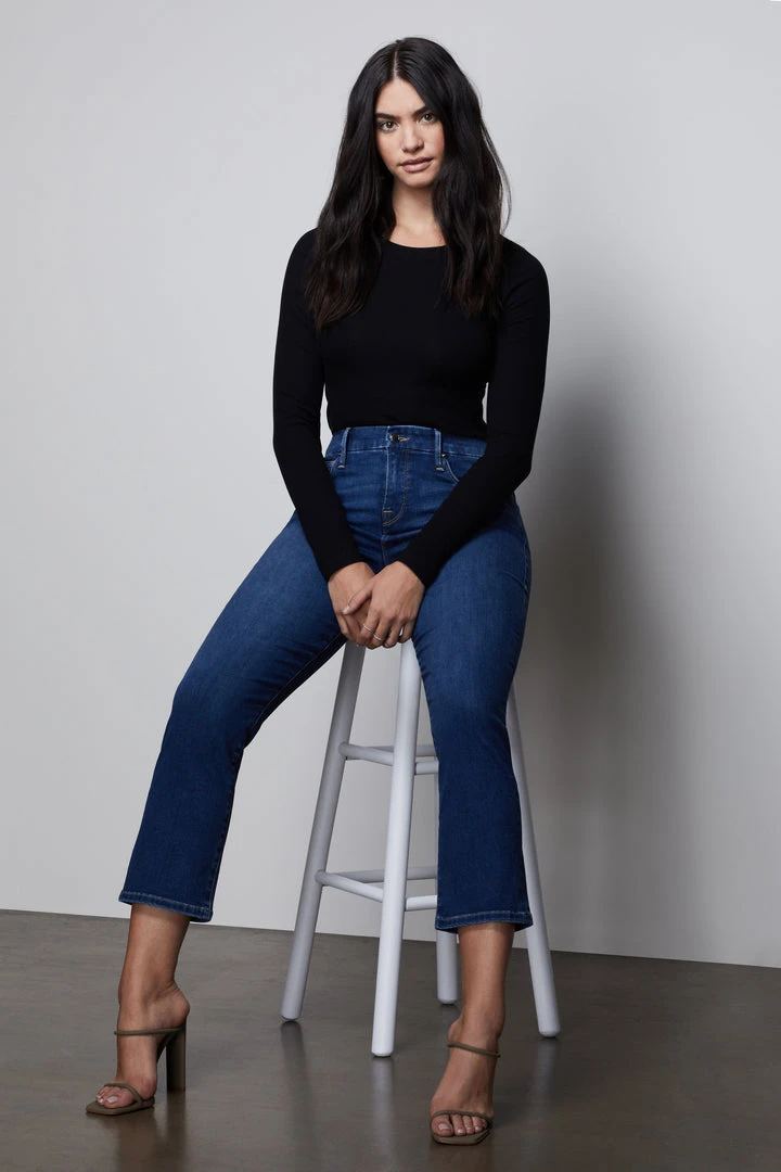 Good Petite Straight, a classic straight leg jean. We’d never forget about you. We just wanted to get it RIGHT. We brought up the knee, lowered the rise, and hemmed it at just the right length.