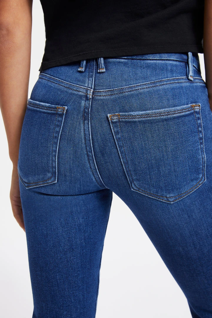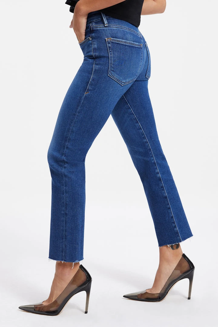 A high-rise vintage-inspired straight fit with flat tummy tech and a gap-proof waistband in smoothing denim. This classic jean is updated with a raw hem for that worn-in-love feel.