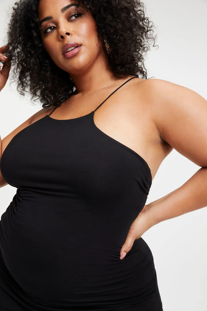 Designed to exude confidence, the Good Touch 90’s Halter Dress is a dress worth making plans for. With a cut out back designed to define your figure and flatter every curve, you will definitely be turning heads in this dress. It is made with the softest sculpting fabric that you’ll never want to take off. Pair with your favorite heels to finish off the look.