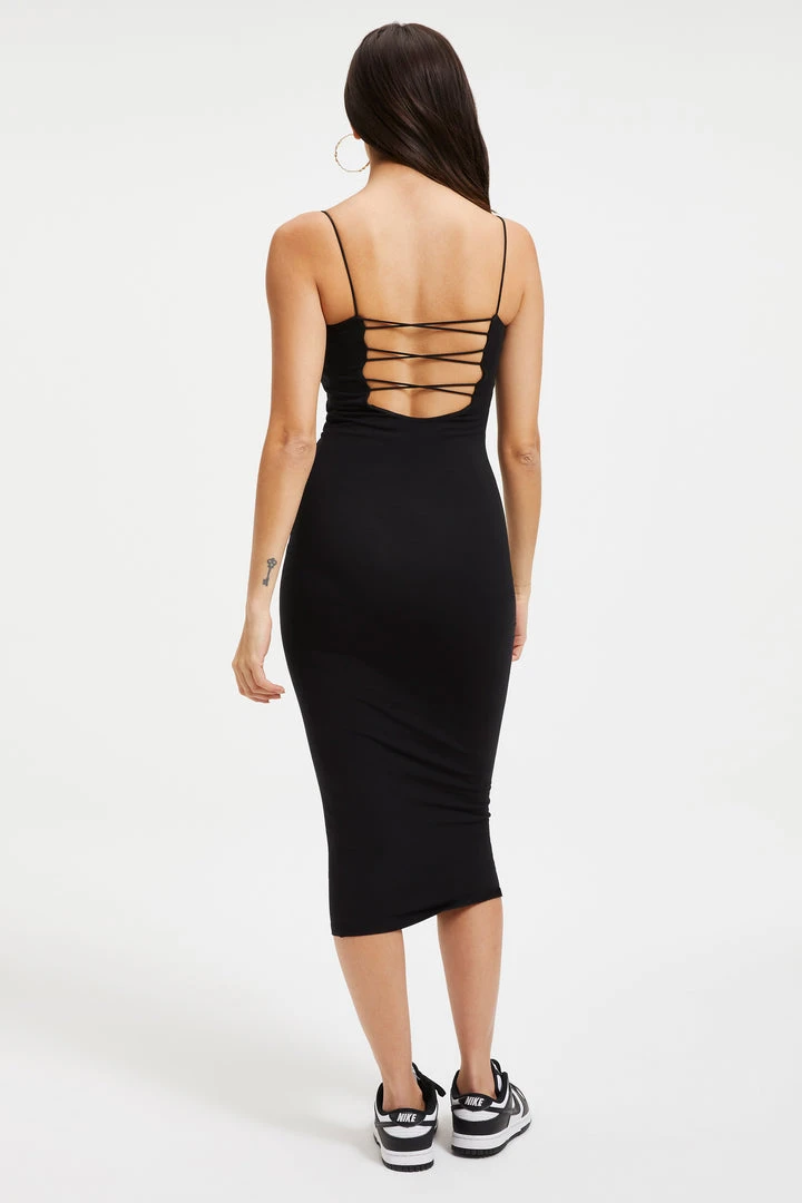 Designed to exude confidence, the Good Touch 90’s Lace Back Dress is a dress worth making plans for. With a lace back design to define your figure and flatter every curve, you will definitely be turning heads in this dress. It is made with the softest sculpting fabric that you’ll never want to take off. Pair with your favorite heels to finish off the look.