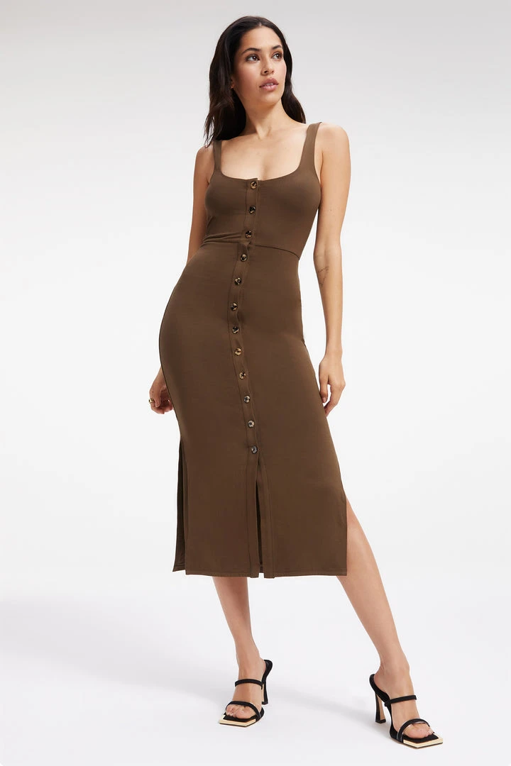 Designed to exude confidence, the Good Touch Button Front Midi is a dress worth making plans for. With a racerback cut designed to define your figure and flatter every curve, you will definitely be turning heads in this dress. It is made with the softest sculpting fabric that you’ll never want to take off. Pair with your favorite heels to finish off the look.