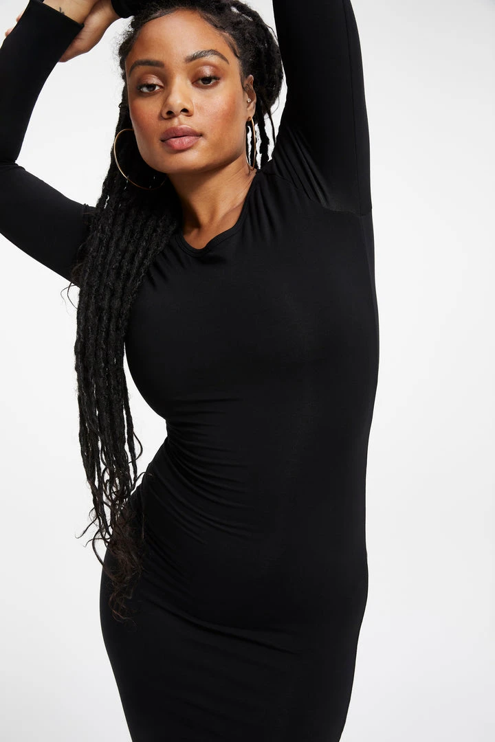 Designed to exude confidence, the Good Touch Long Sleeve Maxi is a dress worth making plans for. With a long sleeve crewneck cut, designed to define your figure and flatter every curve, you will definitely be turning heads in this dress. It is made with the softest sculpting fabric that you’ll never want to take off. Pair with your favorite heels to finish off the look.