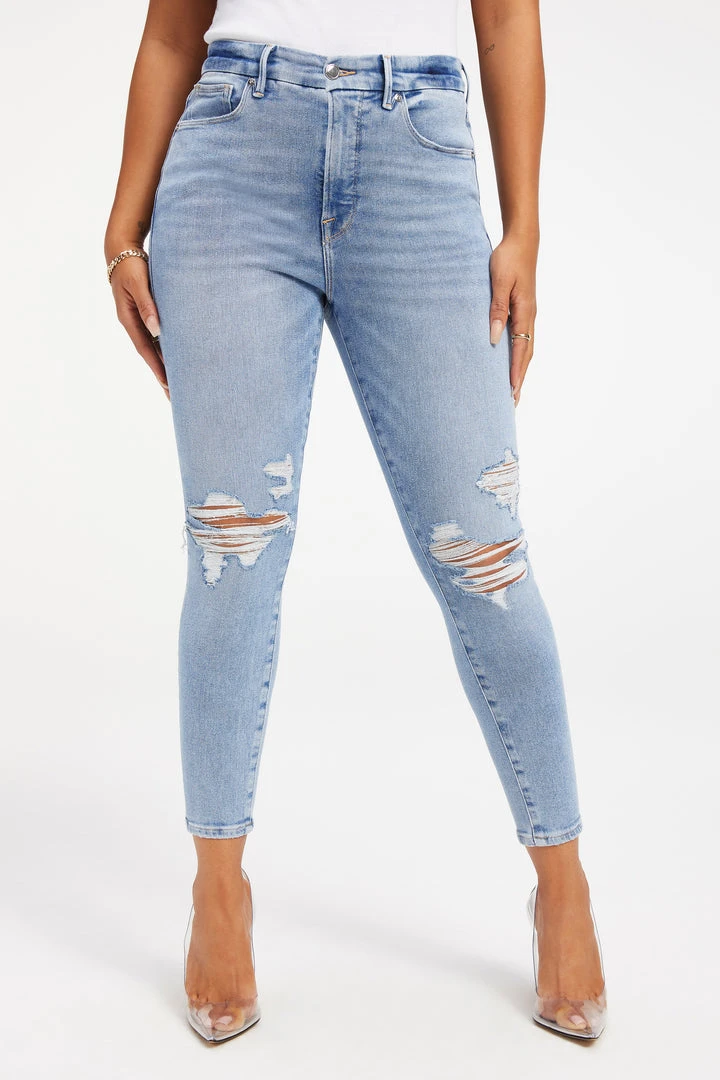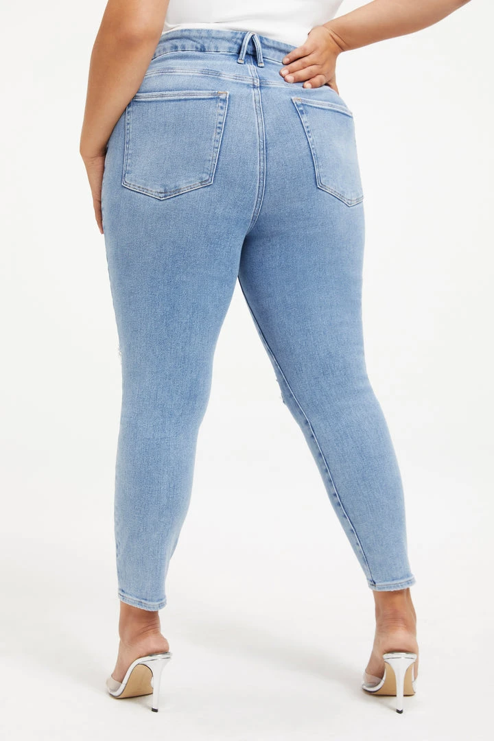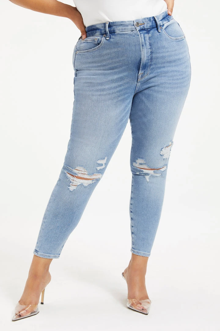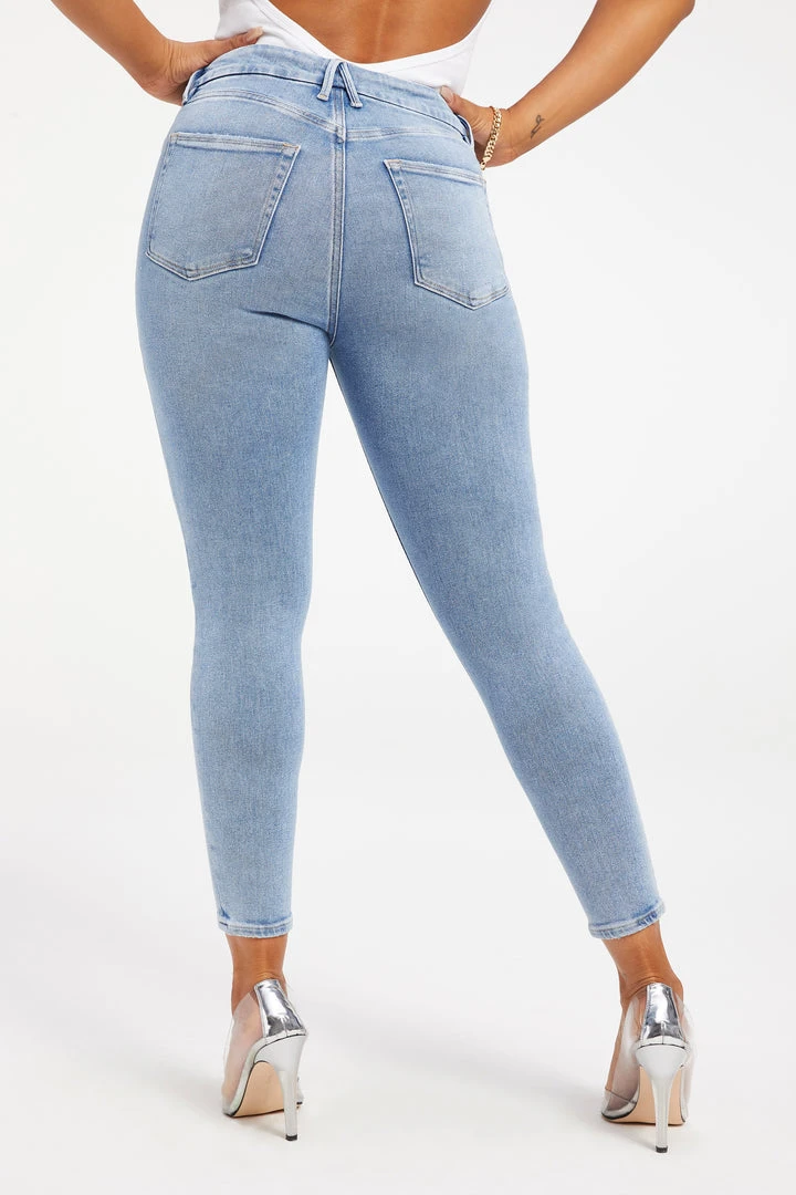 The classic Good Waist jeans with a cropped length. High rise skinny fit stretch jean that nips you in at the waist. Wear it with your favorite pumps or sneakers.