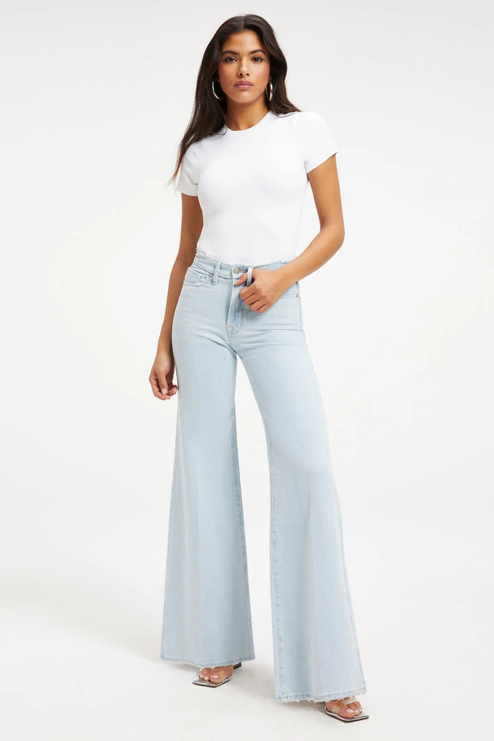 Empowering and practical, loose and comfortable โ this is the denim collection youโve been waiting for.ย Our newest flared fit, Good Waist Palazzo keeps in loose in the leg, high in the rise, and still gives you the best butt ever. Based off our best-selling Good Waist denim fit, wear it baggy or fitted. Whatever makes you feel your best.