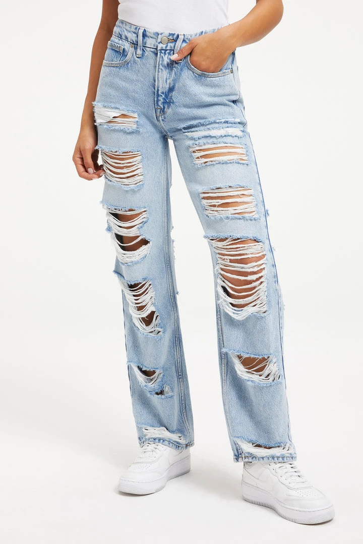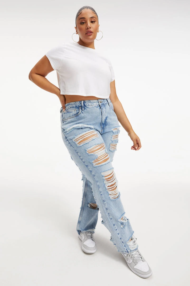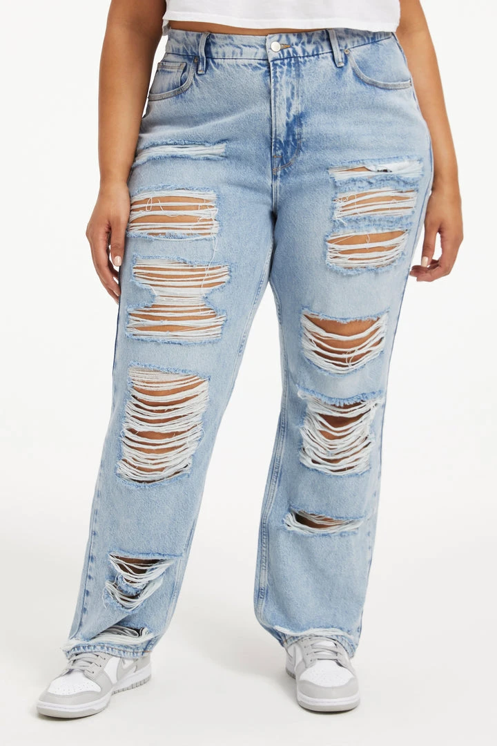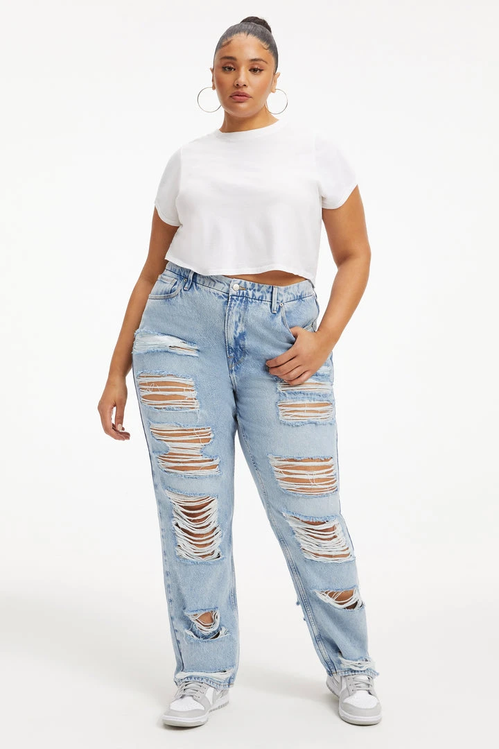 Be festival ready in our updated Good 90s. The perfect sculpted fit, blown out knees, strategic hem destruction – all the festival ready details you need. Our new ’90s-inspired denim is roomy, comfy, and still sexy. With a high waist and straight leg, this bermuda short is oversized yet more form-fitting.
