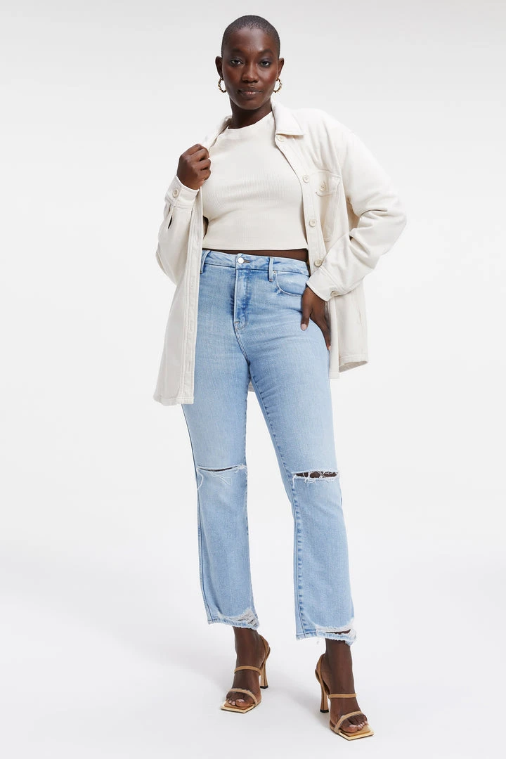 Our ultimate curve-enhancing fit in our highest rise yet, now in a straight leg opening. Yes, these jeans are responsible. Yes, your ass still looks amazing.