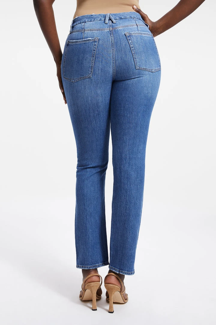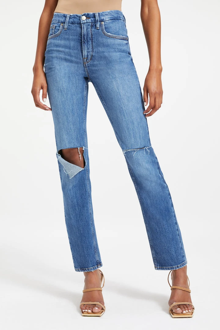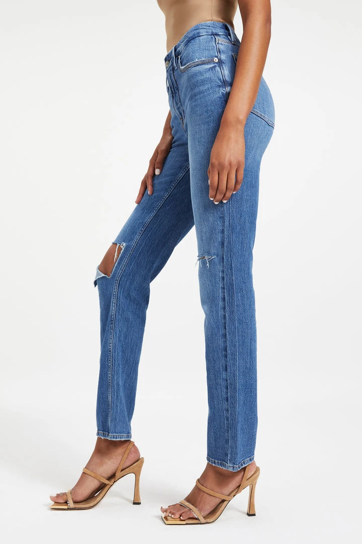 Weโre so over super-tight skinny jeans. Our new ’90s-inspired denim is roomy, comfy, and still sexy. With a high waist and straight leg, this jean is oversized yet more form-fitting than Good โ90s Loose. Throw on your favorite kicks for that chill โ90s look any day of the week.
