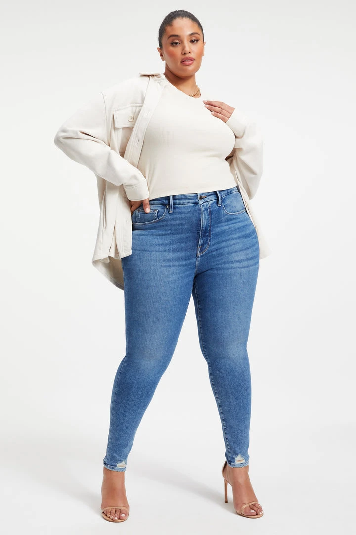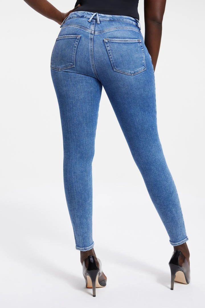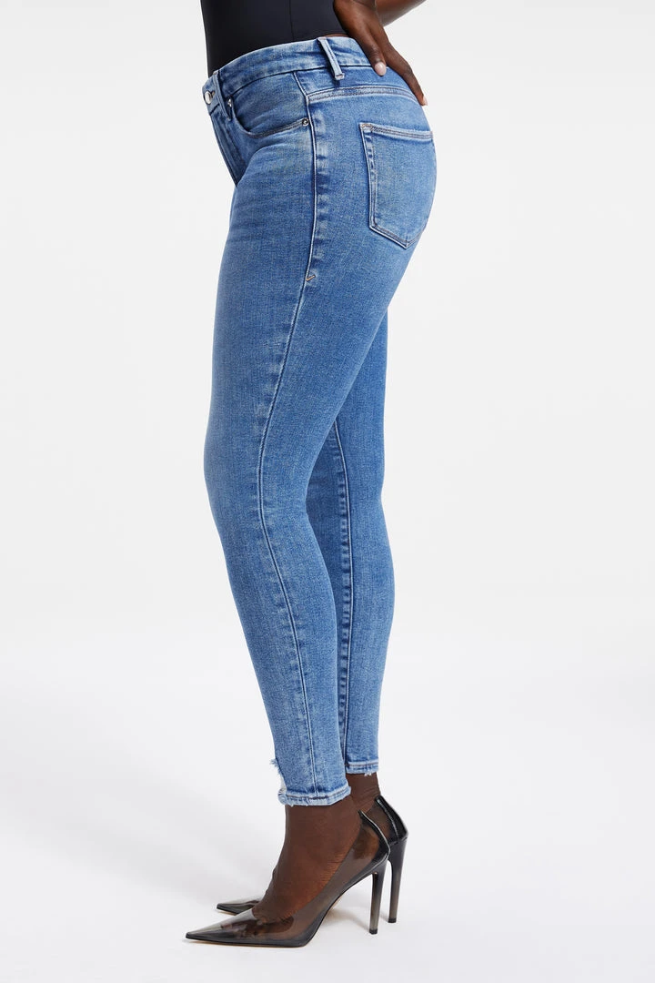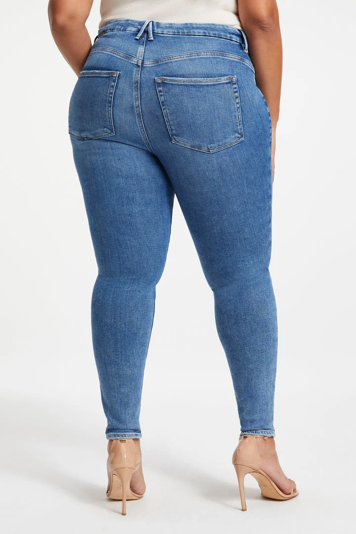 Our #1 best-selling high rise, skinny fit stretch jean in a classic dark blue wash. The Good Legs Deep V are made with a gap-proof contoured waistband and a high waist that’s sure to flatter every curve.