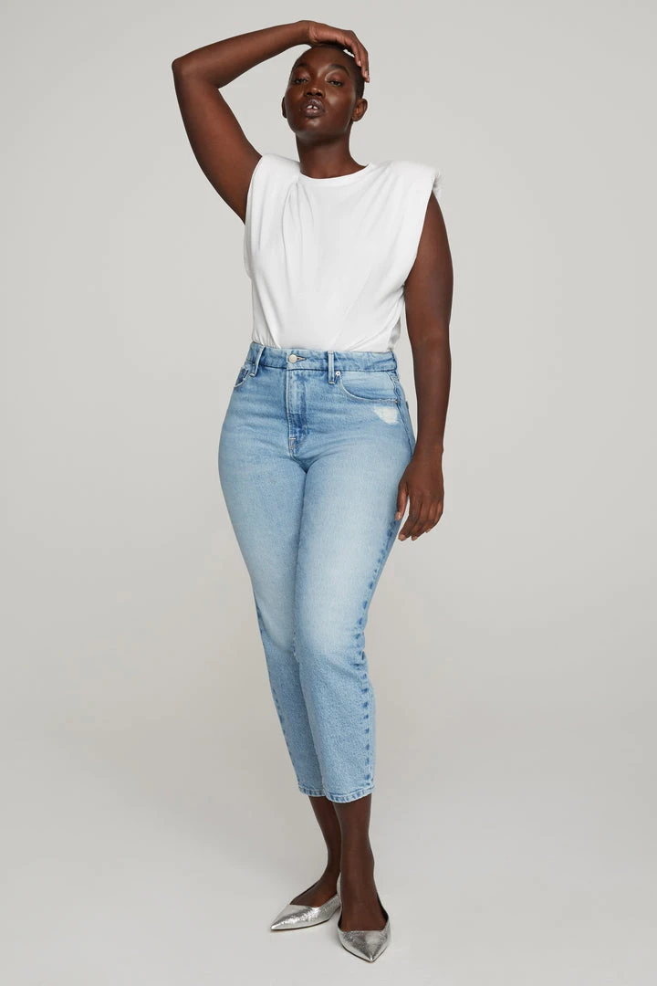We’re obsessed with our latest Good Mom jean. These are not your mother’s jeans. Featuring a full leg tapered to hit right above the ankle, with our signature high rise to hold you in.