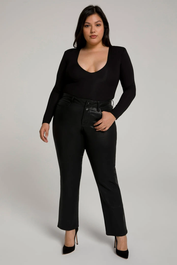Good Straight, a classic straight leg jean. Updated with a black coated treatment for an extra luxurious look.