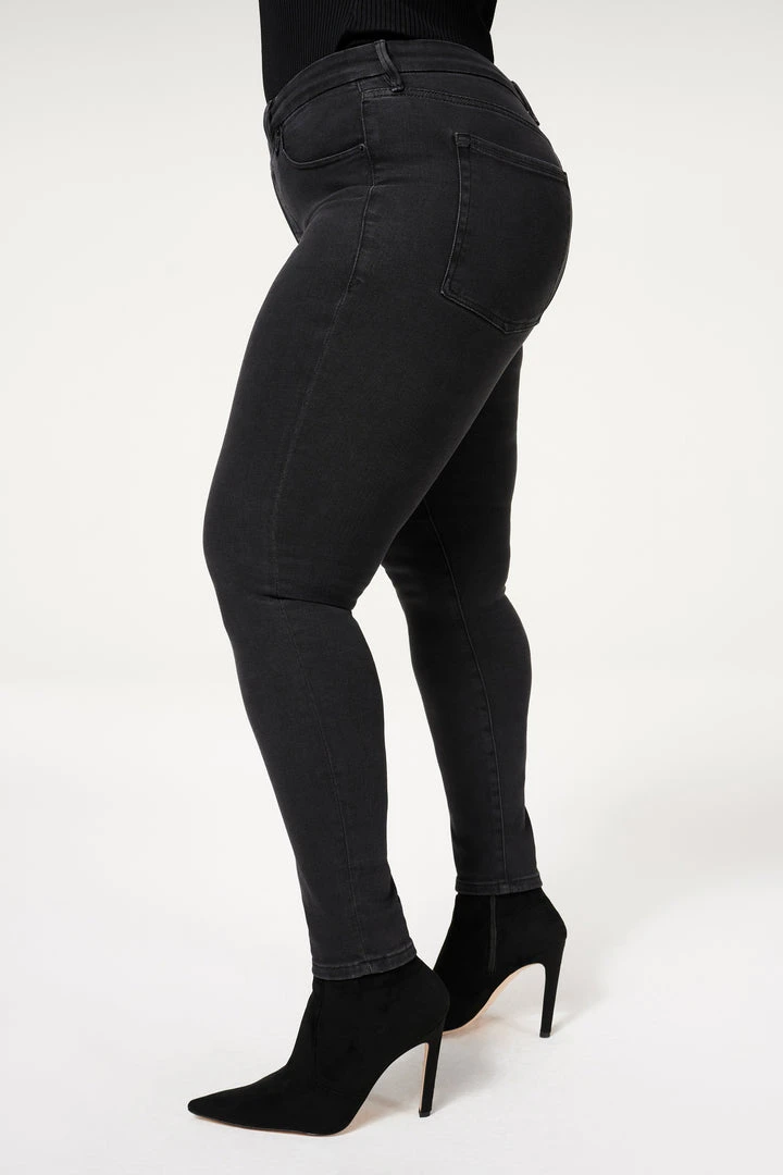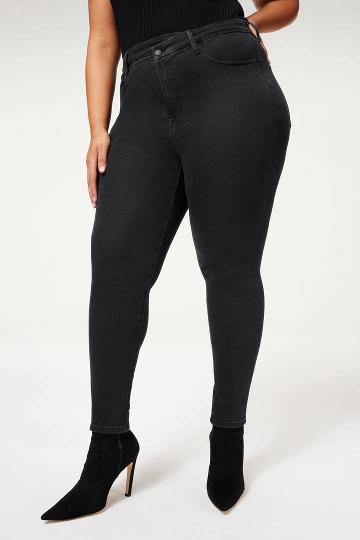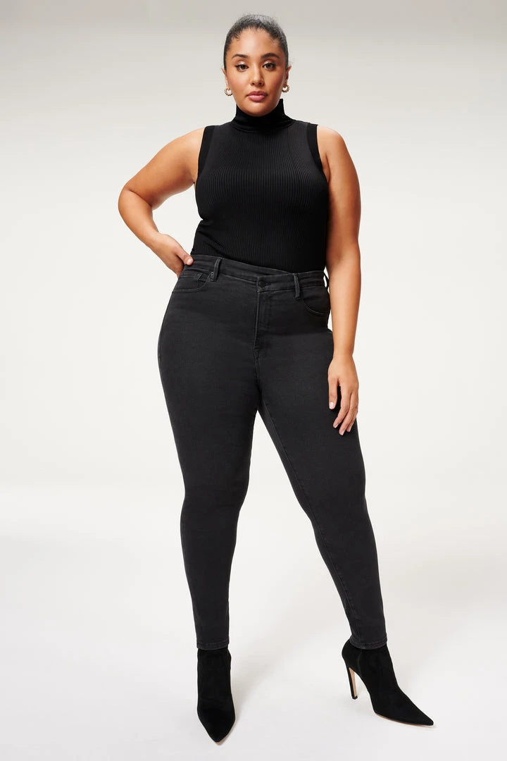The ultimate high rise waist-shaper, the Good Waist Crossover. A new remix to the classic skinny jean.
