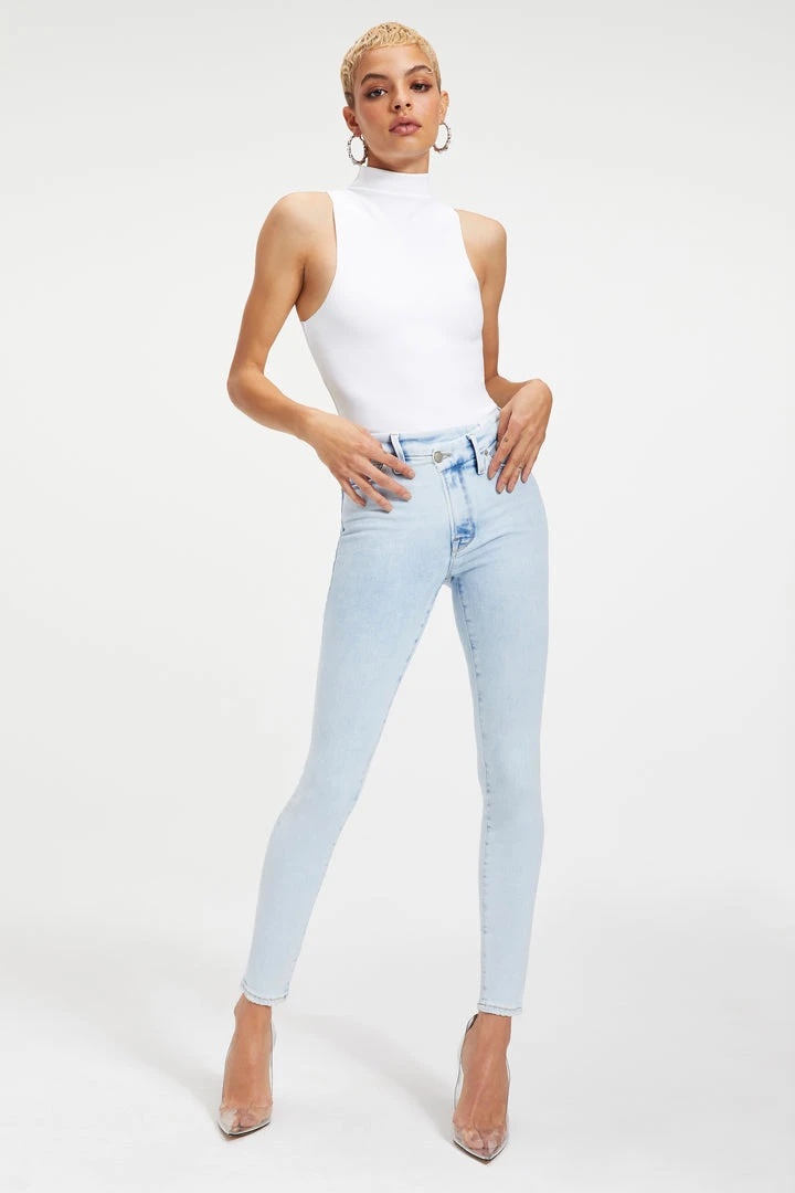 The Good Waist is our ultimate skinny jean that nips you in at the waist. We updated it with a crossover waistband.