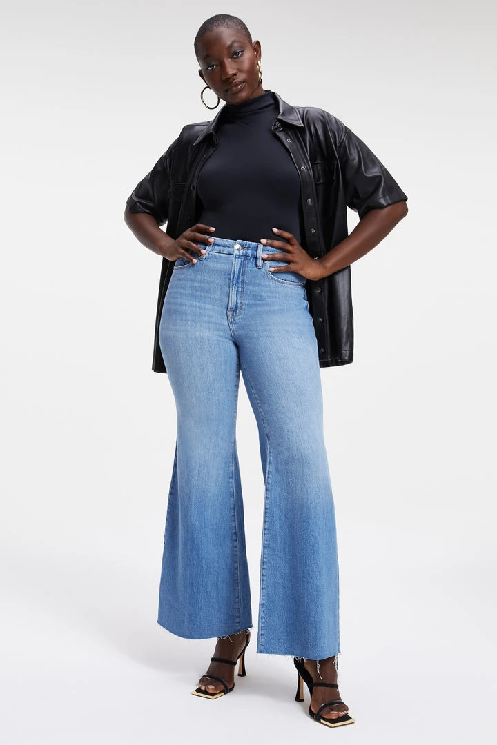 Empowering and practical, loose and comfortable – this is the denim collection you’ve been waiting for. Our newest flared fit, Good Waist Palazzo keeps in loose in the leg, high in the rise, and still gives you the best butt ever. Based off our best-selling Good Waist denim fit, wear it baggy or fitted. Whatever makes you feel your best.