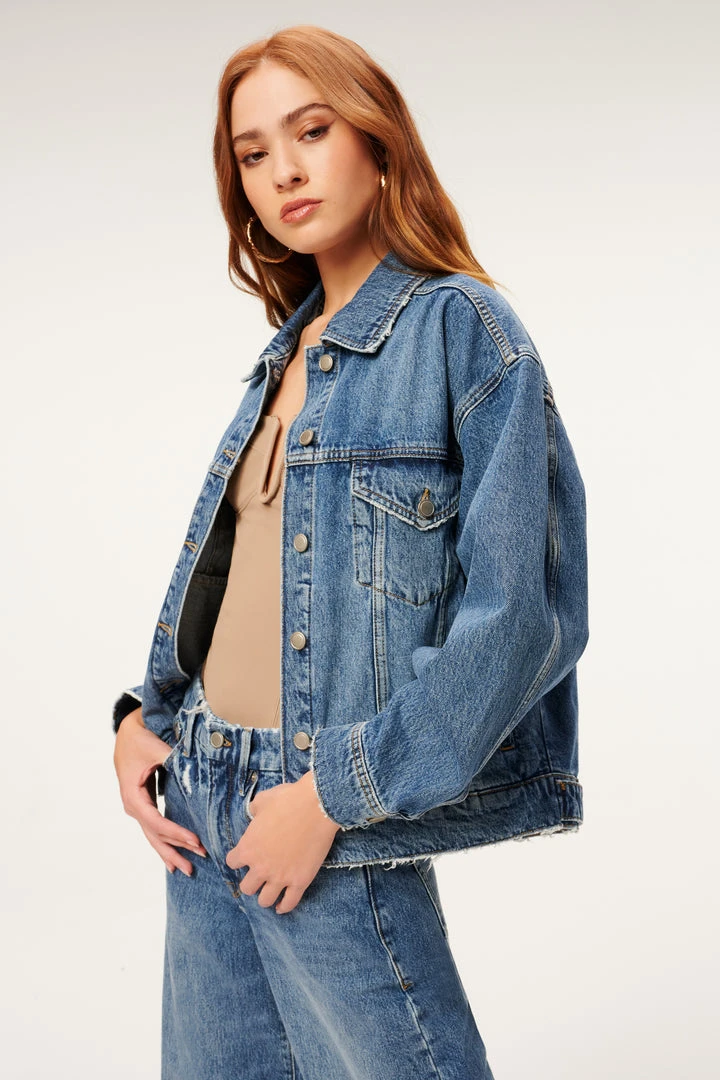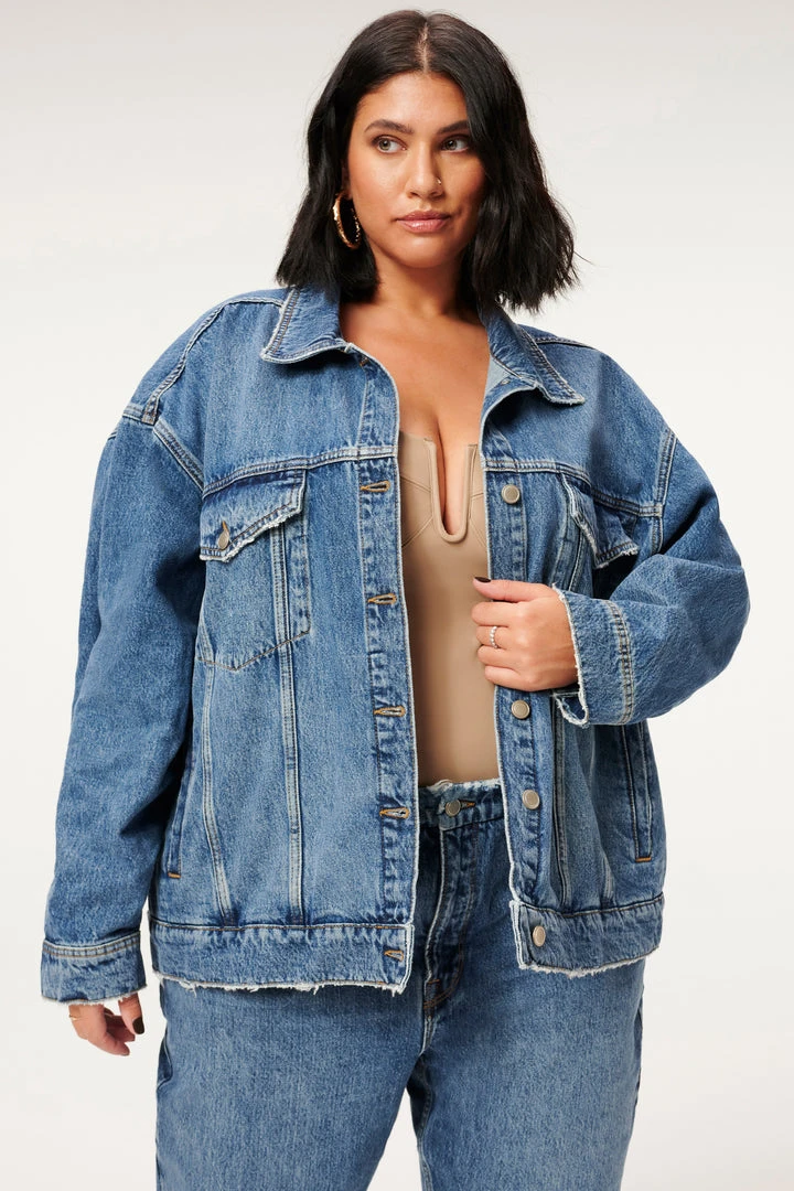 Introducing the Good Oversized Trucker. This oversized jacket is the perfect throw on to add some flair to your outfit.ย