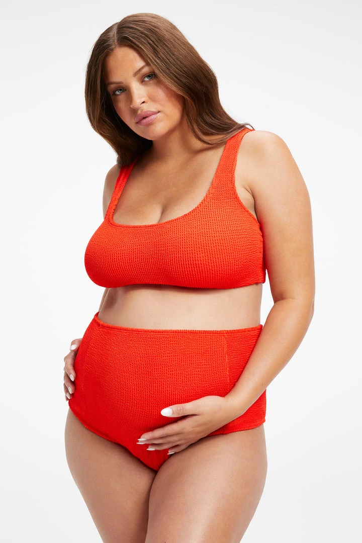 Your favorite scoop neck bikini top, now in our most innovative fabric yet. This is perfect to wear all three trimesters. The Always Fits Good Mama Scoop can stretch up or down a size while keeping its shape, so you buy once and it fits always.