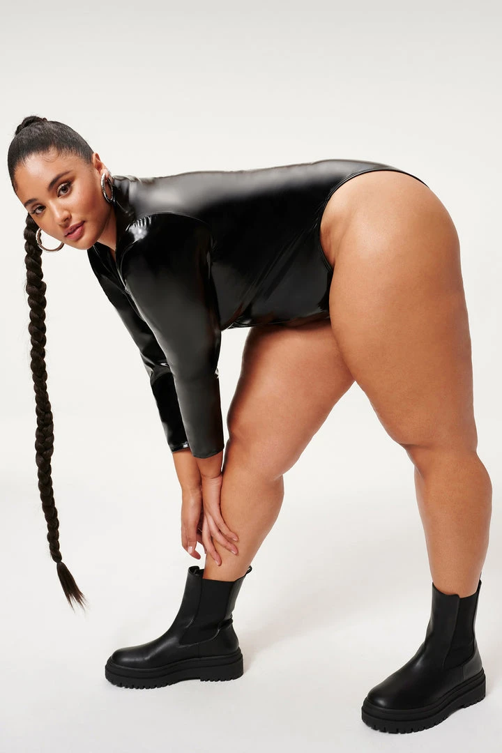 Look sleek and sexy in the new Vinyl Zip One-Piece. Featuring a zip front so you can control how much skin you want to show. Wear it to dip in, lay out, or go out in with one of our jeans.
