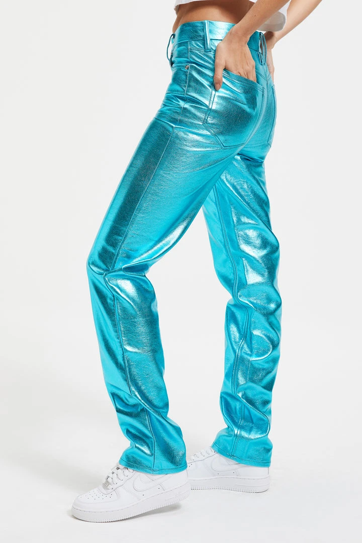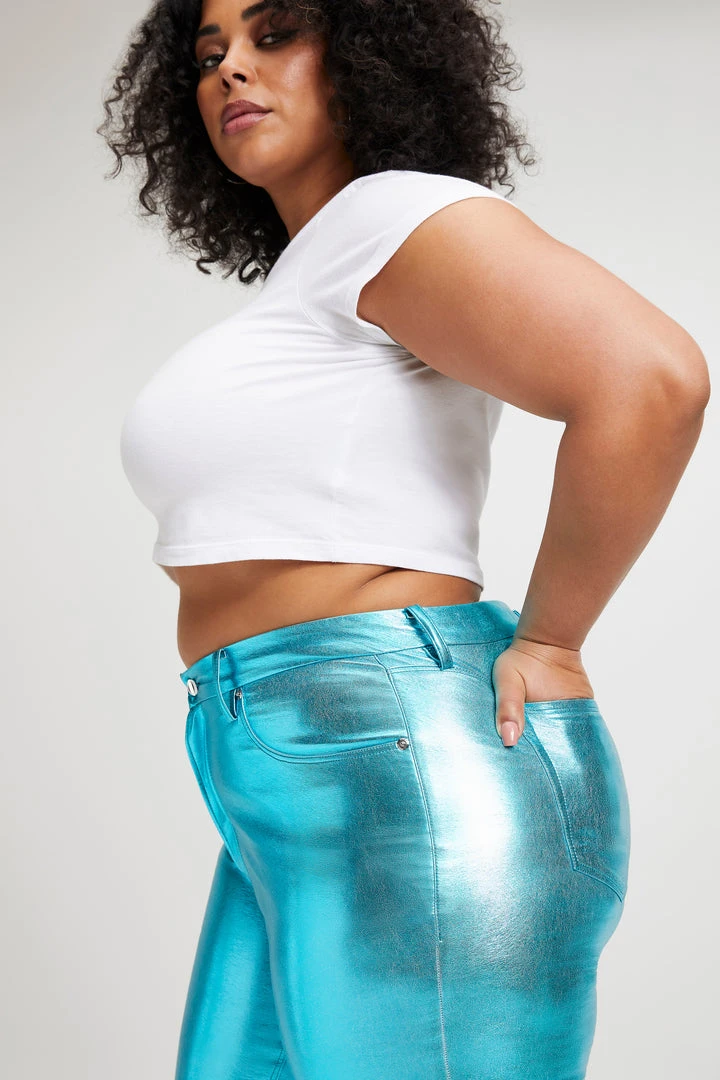 Made with a 90’s vintage inspiration, our Good Icon will be your new everyday jean. We are now featuring this loved style in 3 metallic colors in our better than leather fabric. This classic style has a flattering high-rise that nips you right in the waist and straight legs. Wear with your favorite pair of or heels or boots.
