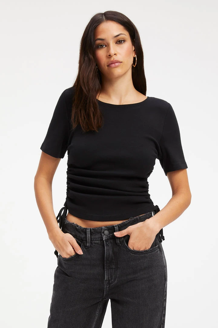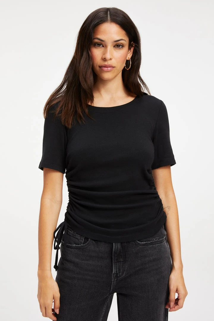 An easy tee with adjustable ruching along the sides. Throw on with your favorite pair of jeans for an effortlessly cool look.