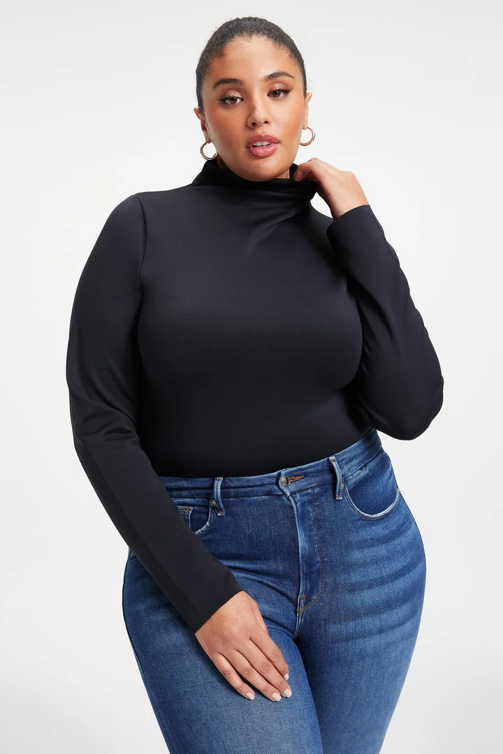 The curve-hugging, shape-enhancing, confidence boosting essential for every wardrobe. The Scuba Mock Neck Bodysuit is made with luxurious compressive fabric designed to sculpt and smooth. Wear this with your favorite pair of jeans for the ultimate go-to outfit.