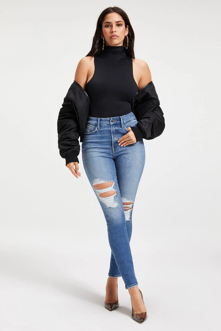 The curve-hugging, shape-enhancing, confidence boosting essential for every wardrobe. The Scuba Mock Neck Tank Bodysuitย is made with luxurious compressive fabric designed to sculpt and smooth. Wear this with your favorite pair of jeans for the ultimate go-to outfit.