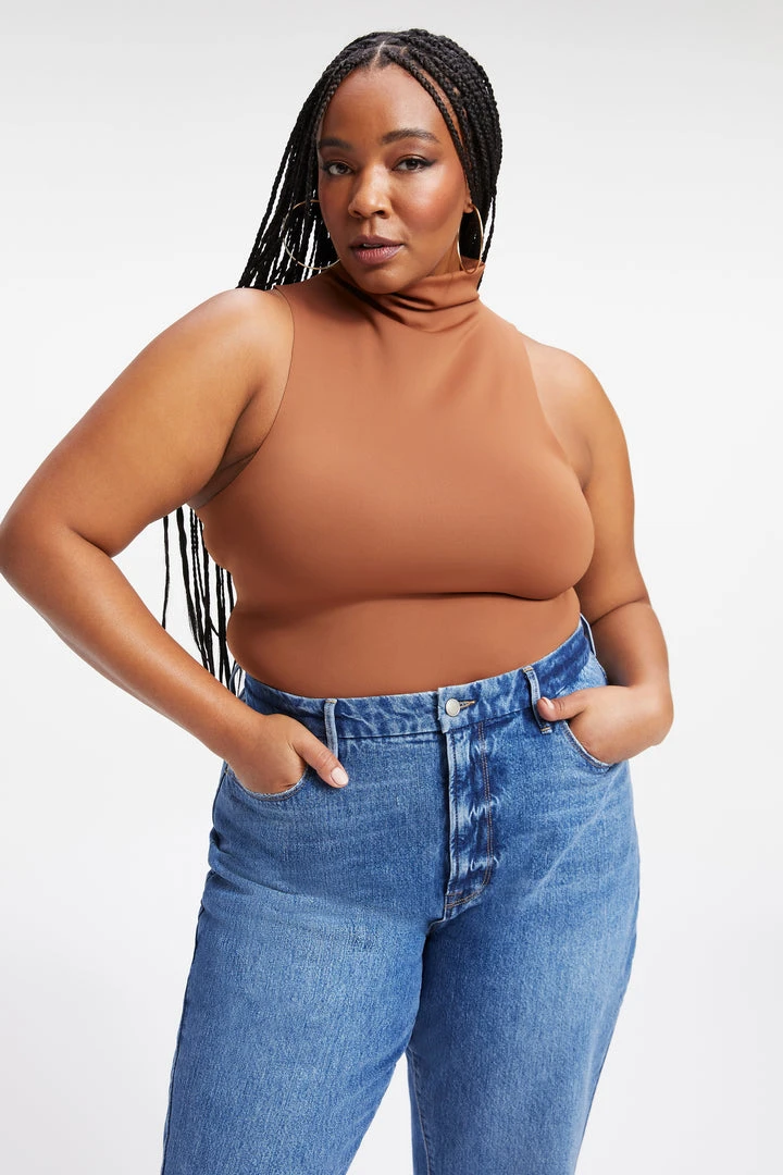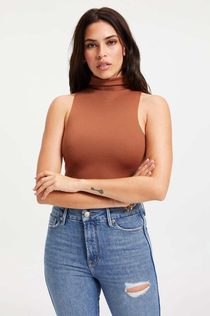 The curve-hugging, shape-enhancing, confidence boosting essential for every wardrobe. The Scuba Mock Neck Tank Bodysuitย is made with luxurious compressive fabric designed to sculpt and smooth. Wear this with your favorite pair of jeans for the ultimate go-to outfit.
