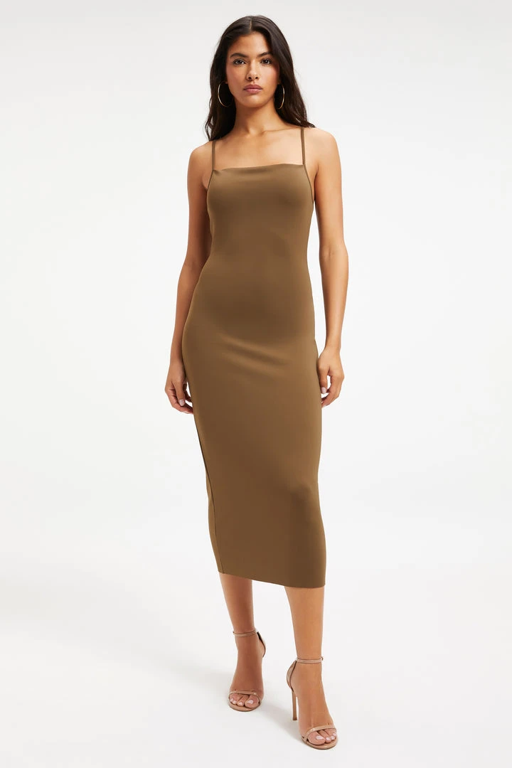 Whether you’re out to play or on vacay, the Scuba Spaghetti Midi Dress is a one and done situation. The super sexy and ultra-flattering sculpting dress that looks great on every body.
