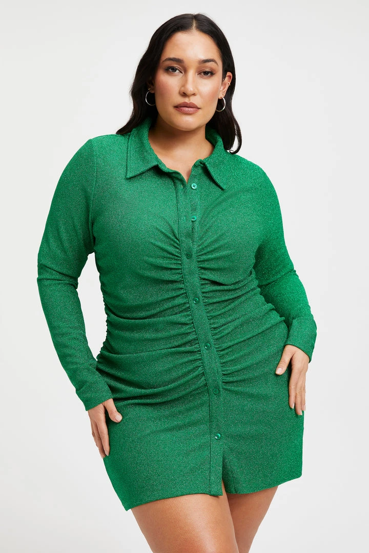 Designed to exude confidence, the Sparkle Ruched Mini Dress is a dress worth making plans for. With a ruched front designed to define your figure and flatter every curve, you will definitely be turning heads in this dress. It is made with the softest shimmer fabric that you’ll never want to take off. Pair with your favorite heels to finish off the look.