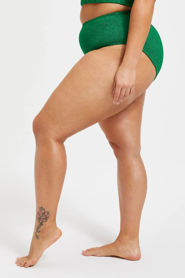 We took everything we know about your body and the fits you love to create the Sparkle Swim Brief. A staple to every swim collection, this ultra-flattering bottom is your go-to basic. A new curve-enhancing style smooths, sculpts, and stays put – in knockout summer approved shimmer fabric. Complete the look with mixing and matching the Sparkle Scoop Top or the Sparkle Demi Top.