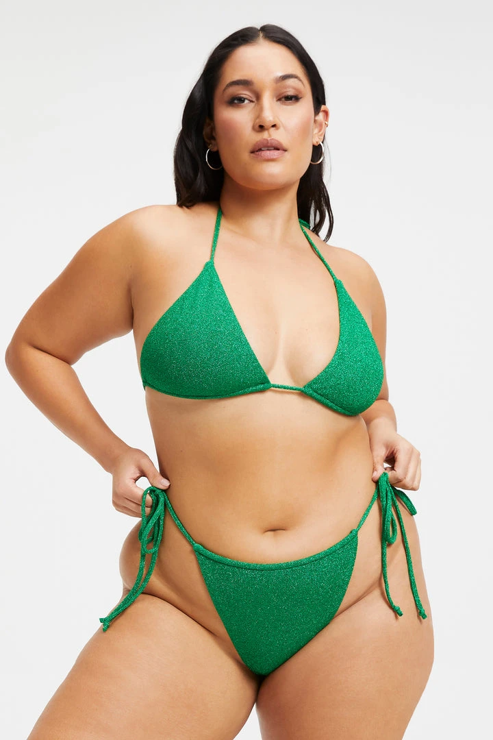 Delicate and sexy this is your tanning suit for the summer. Introducing the Sparkle Tiny Ties Top. Our take of the classic triangle top, now with barely there ties.