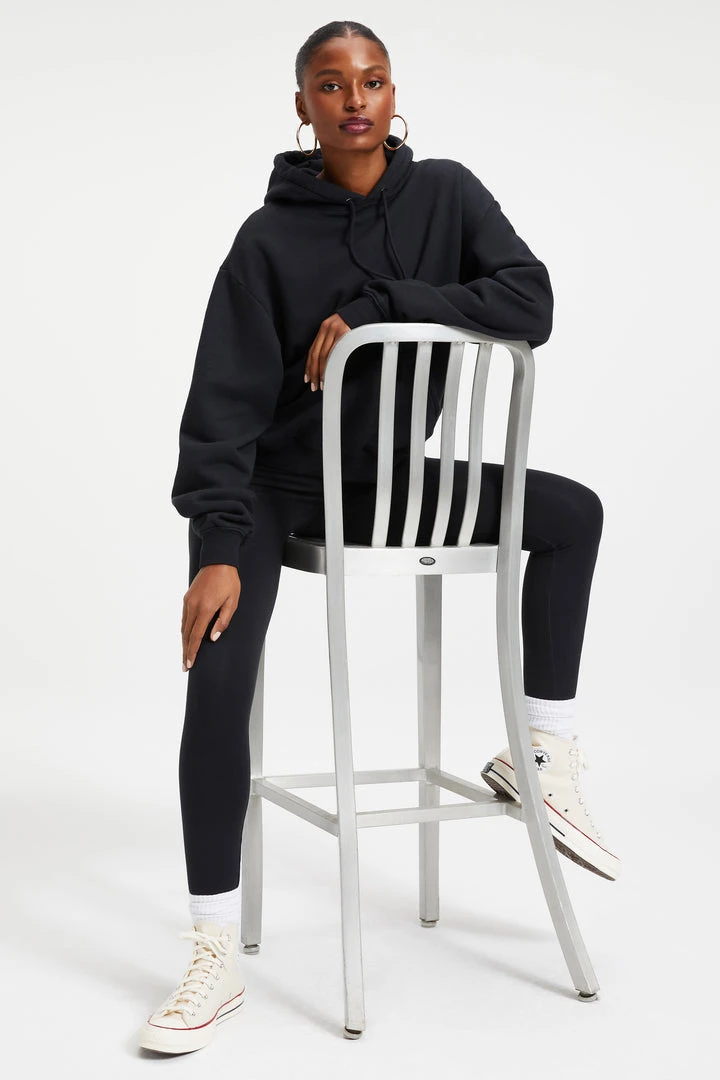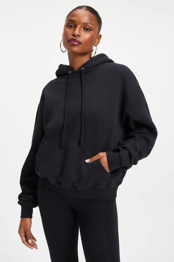 Tuck up in the cozy Boyfriend Hoodie, and show them nothing. Covers your bum and pulls over your head, with extra long sleeves cover every finger tip… and then some.