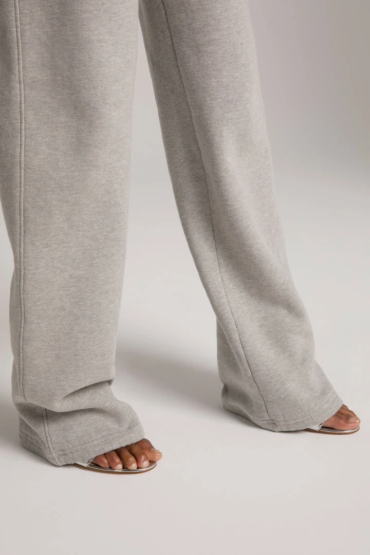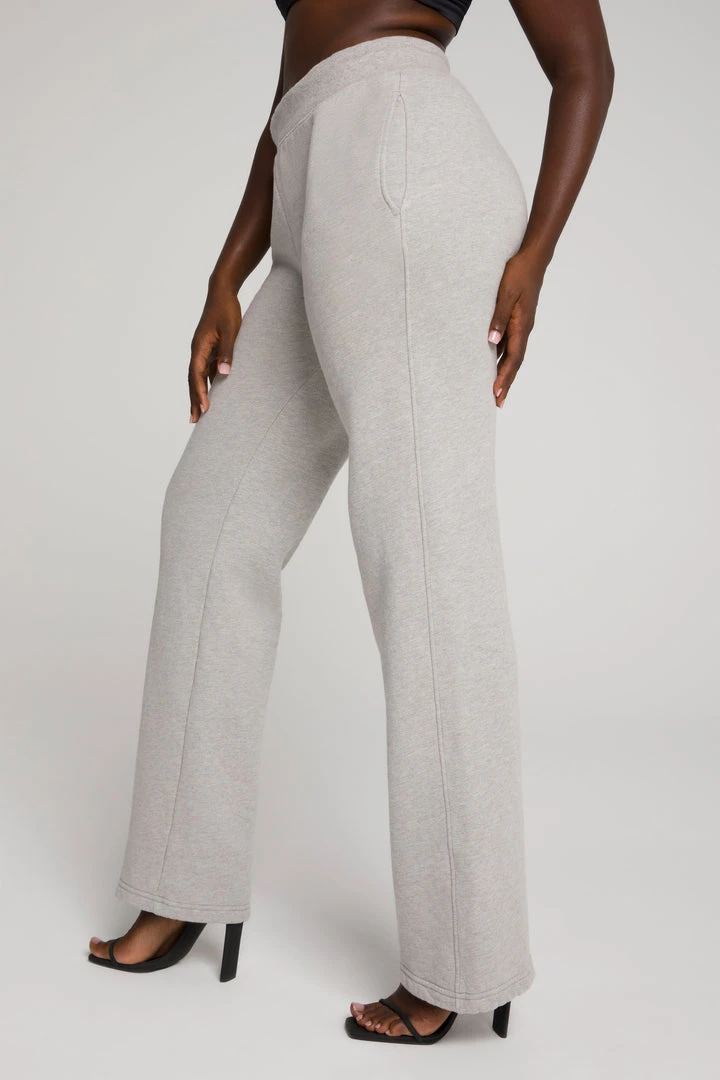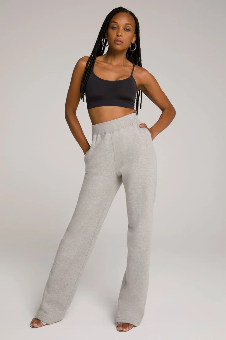 The Wide Leg Sweatpant is high waisted slim fitting handy side pockets. With a long leg inseam and a wide leg opening, this pant puddles at the ankle and covers your shoe in the sexiest way–Khloé approved!