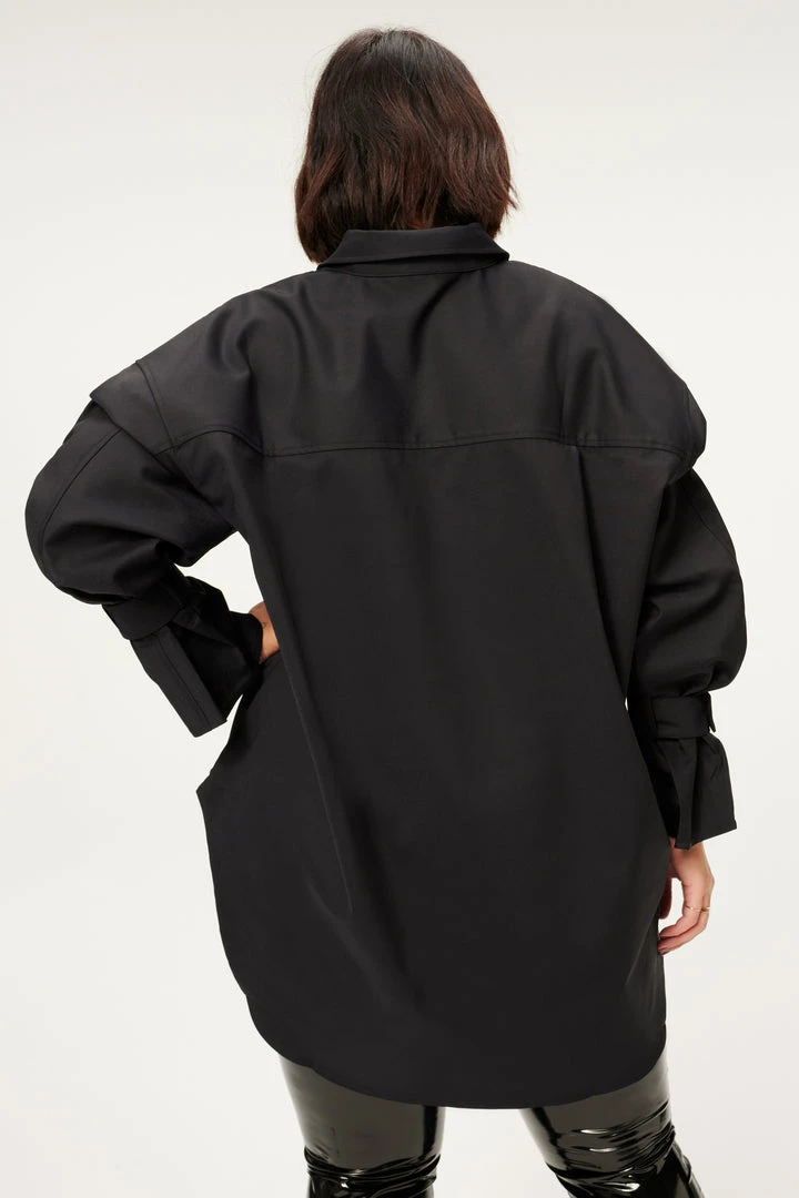 - Wide sleeve with removable belted cuff detail at wrist