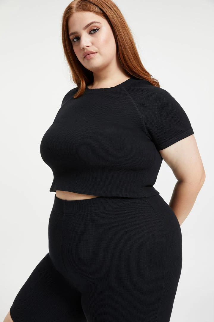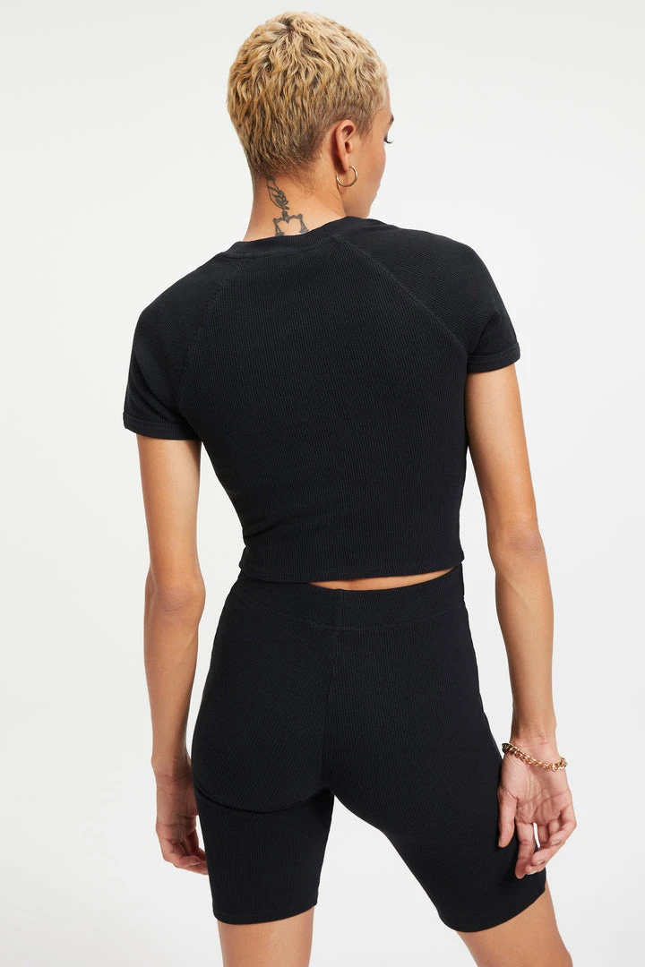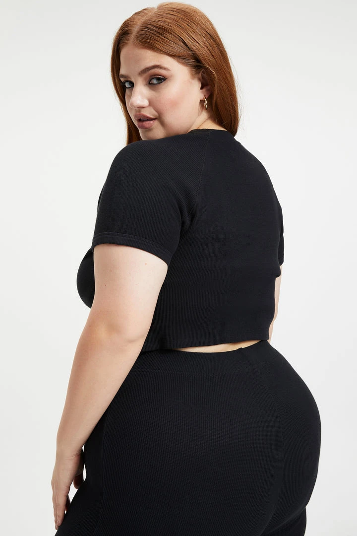 Sleek, yet understated. The Thermal Crop Tee is practically a wardrobe building block. It features a high neck and a snug, figure-flattering fit. Wear with your favorite pair of jeans for that easy yet sexy everyday on-the-go look.