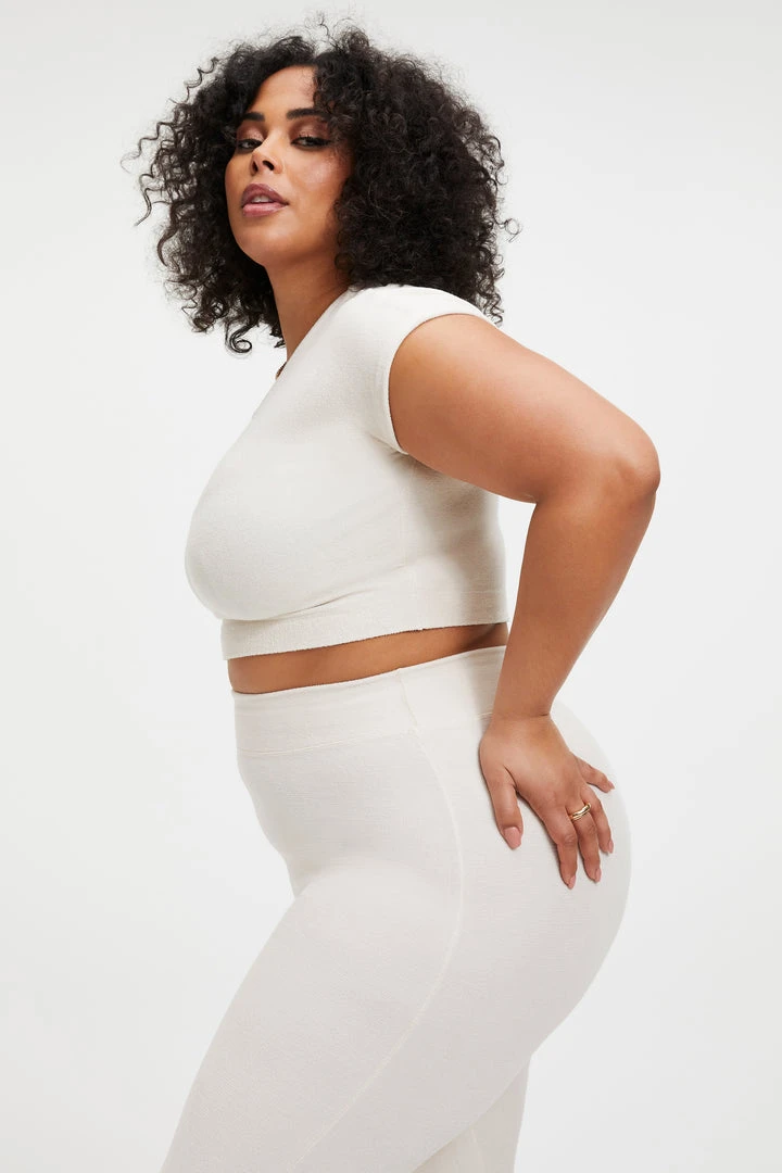 Sleek, yet understated. The Terry Crop Tee is practically a wardrobe building block. It features a high neck and a snug, figure-flattering fit. Pair with the Terry Bike Short or the Terry Slim Flare pant to complete the look.