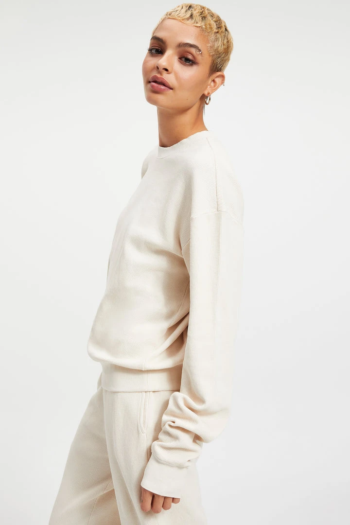 An innovative waffle fabric that has this borrowed from-the-boys feel you’ll love, The Thermal Boyfriend Sweatshirt is an ultra comfortable basic for everyday wear. Wear yours lounging around the house or with jeans when running errands.
