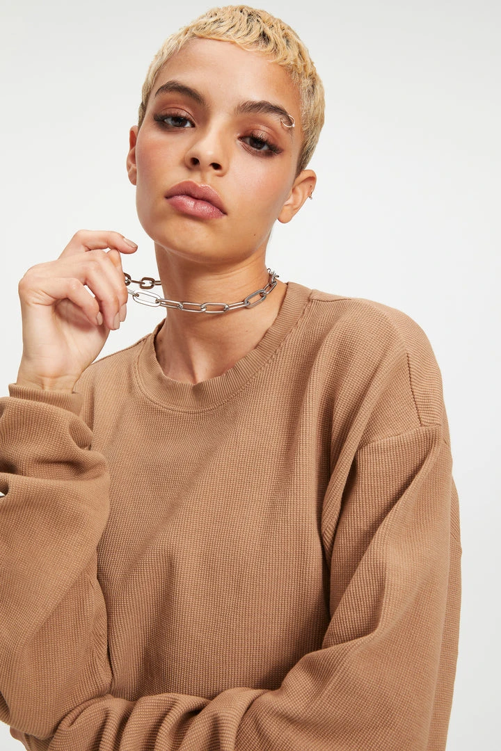 An innovative waffle fabric that has this borrowed from-the-boys feel you’ll love, The Thermal Boyfriend Sweatshirt is an ultra comfortable basic for everyday wear. Wear yours lounging around the house or with jeans when running errands.