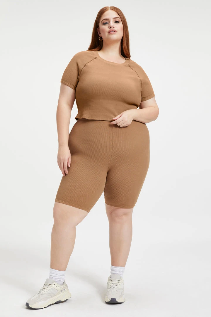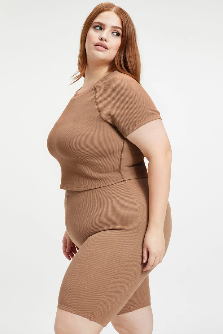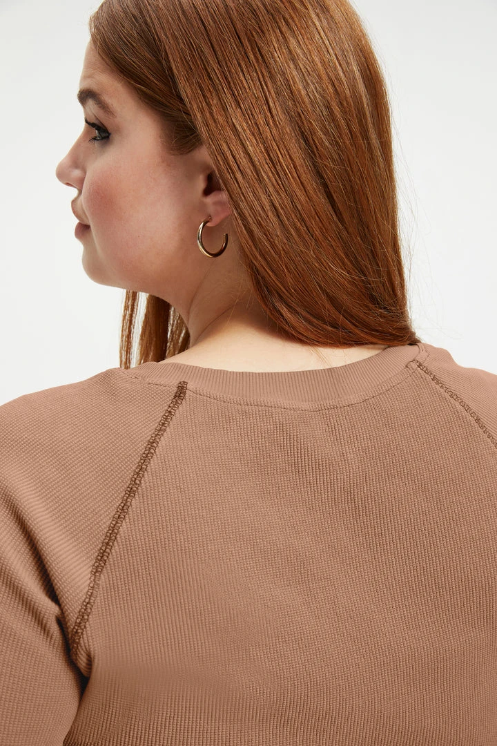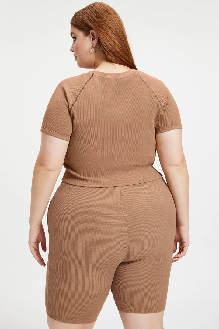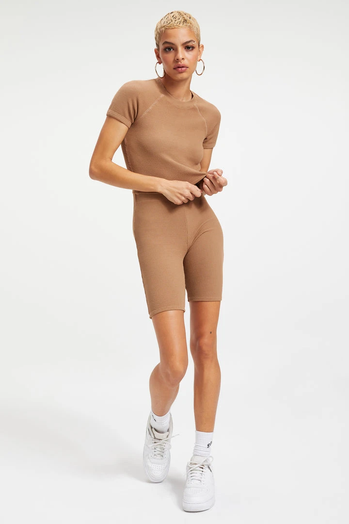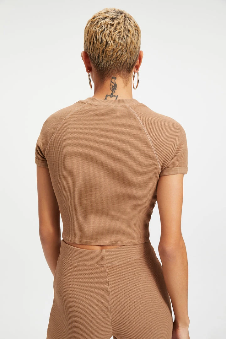 Sleek, yet understated. The Thermal Crop Tee is practically a wardrobe building block. It features a high neck and a snug, figure-flattering fit. Wear with your favorite pair of jeans for that easy yet sexy everyday on-the-go look.