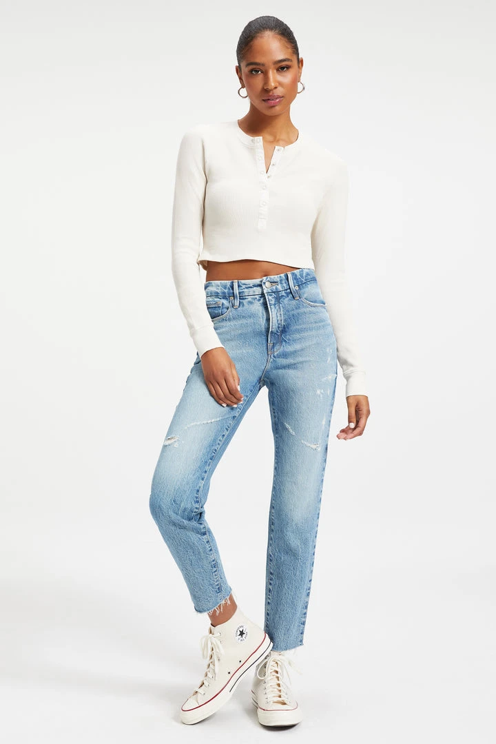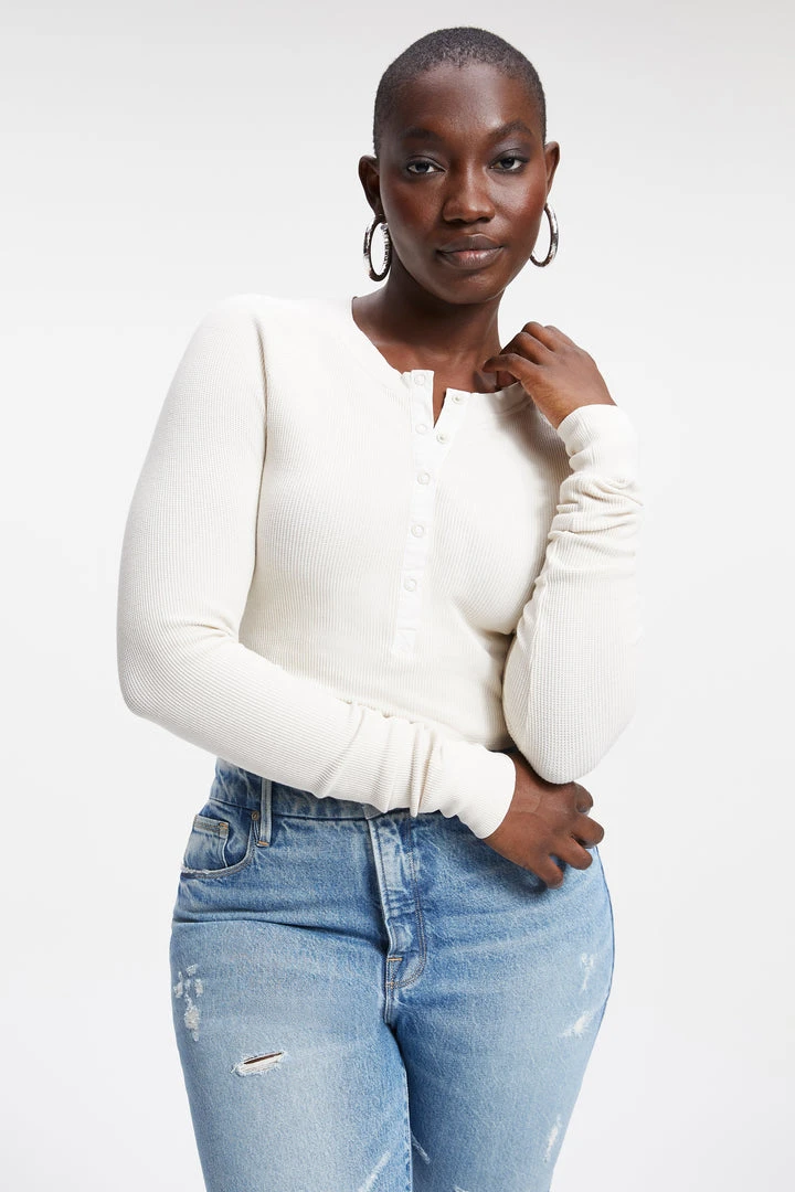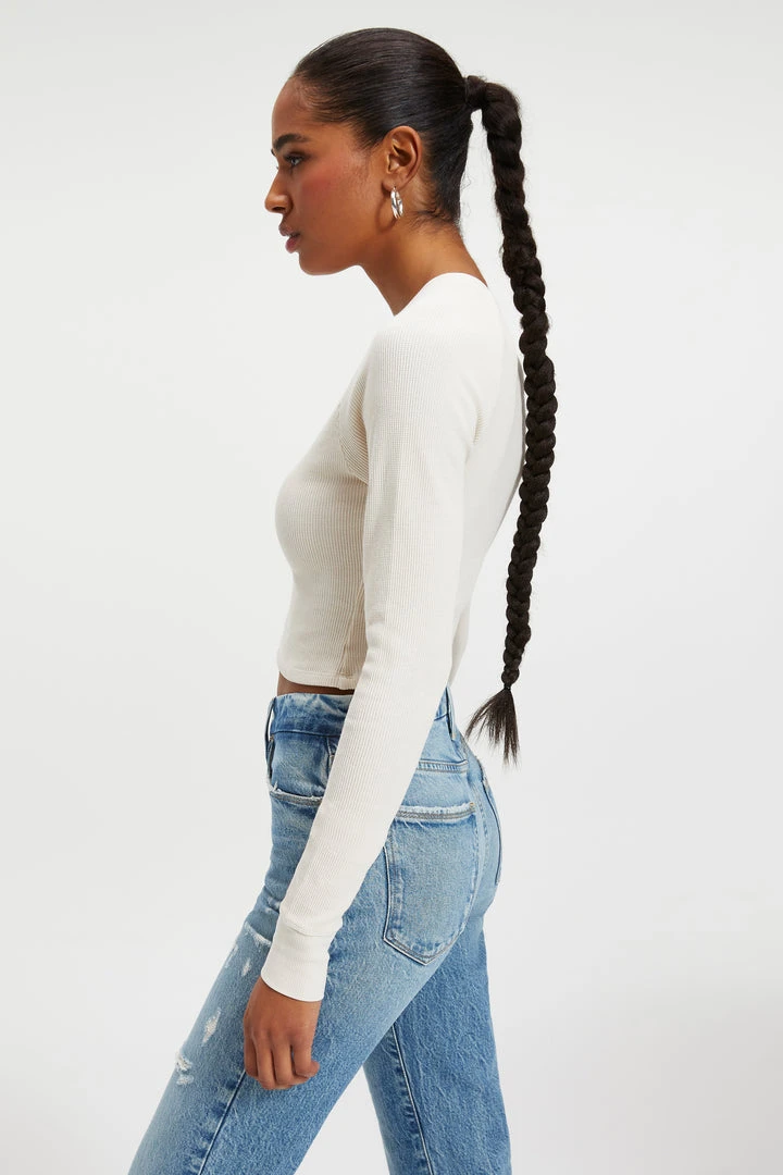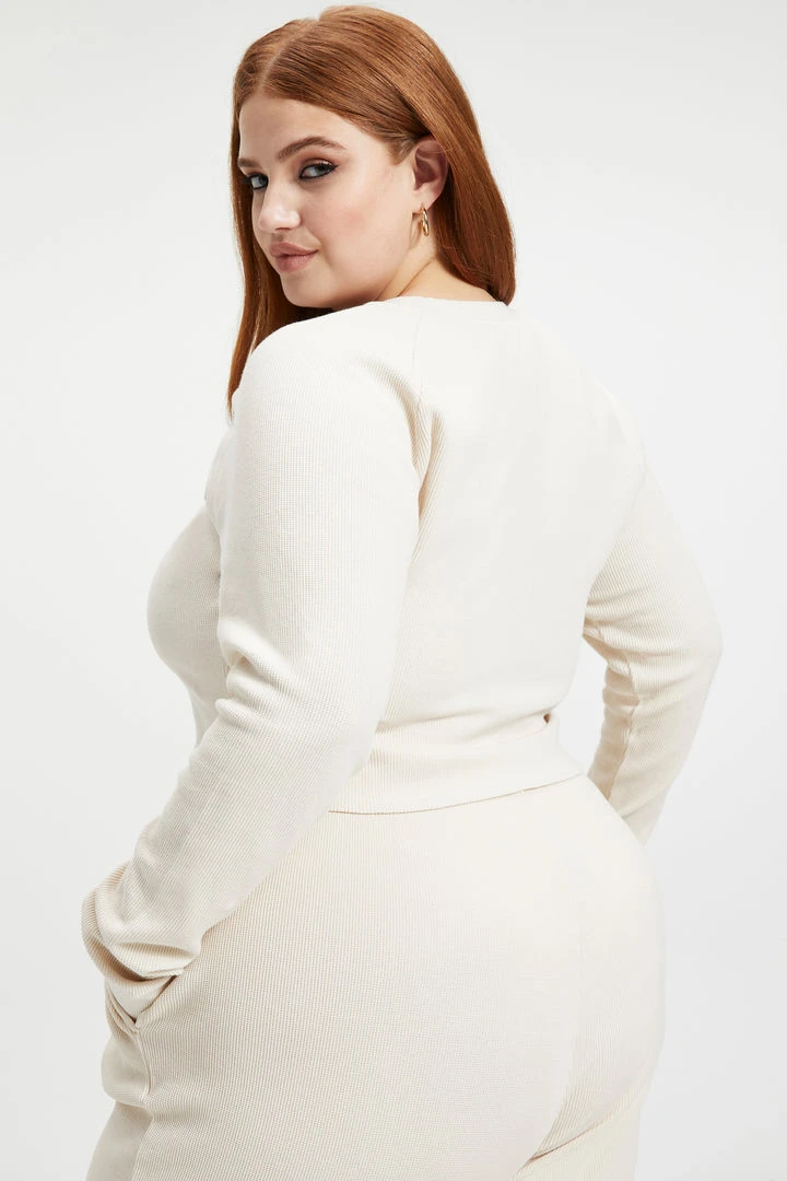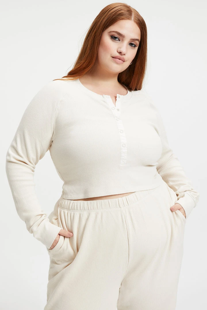 Time to make room in your closet for your new favorite cropped thermal. The Thermal Fitted Henley is the chill wear-out or stay-in essential. Cut from a soft waffle fabric, you’ll never want to take this off.